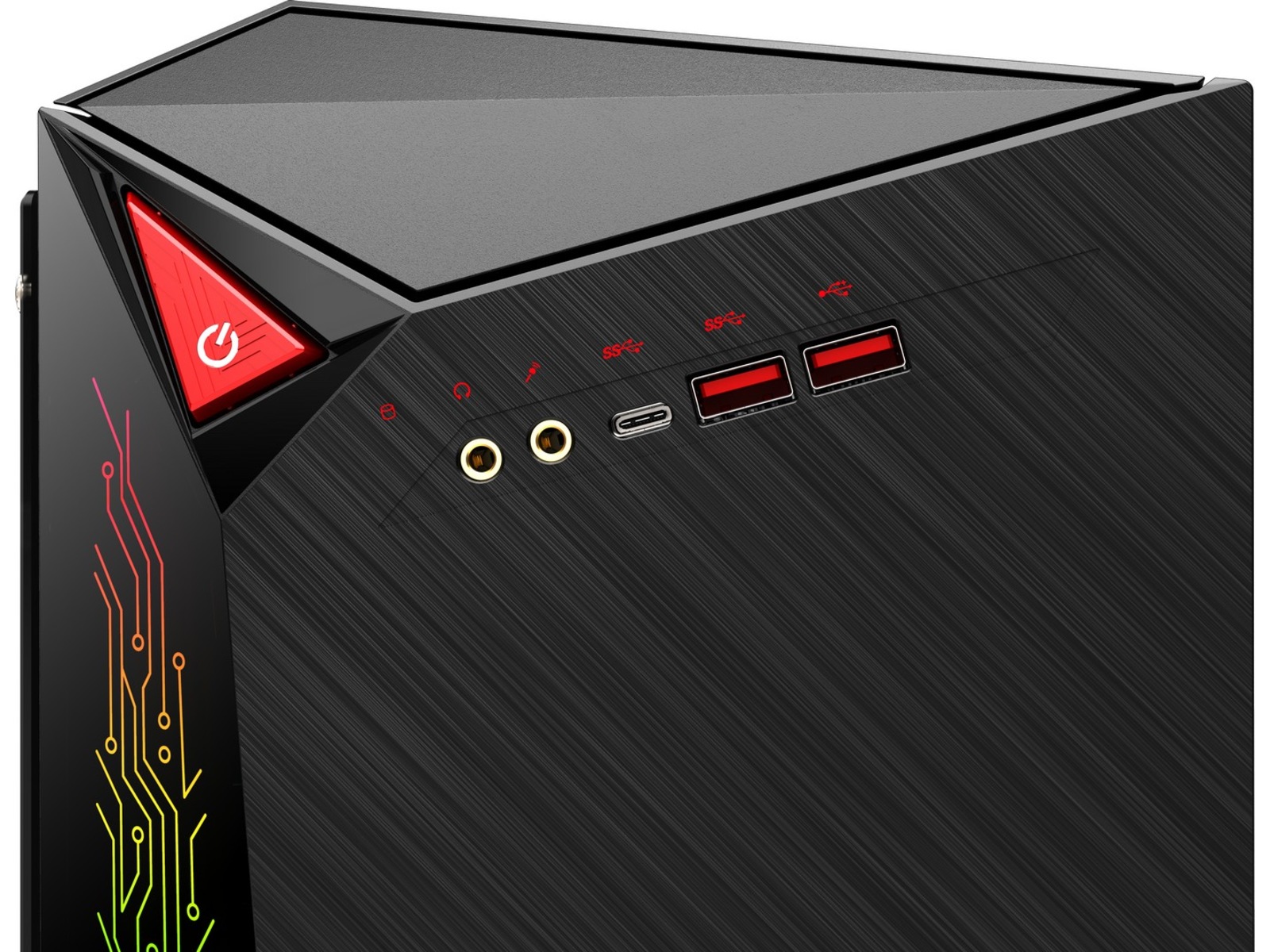 Gränssnitt 1 x ljudingång, 2 x mikrofon (1 på framsidan, 1 på baksidan), 1 x ljudutgång (bakre), 6 x USB 3.2 Gen 1 (2 främre, 4 bakre), 1 x USB-C 3.2 Gen 2, 1 x USB 3.2 Gen 2, 1 x PS/2-tangentbord/mus, 1 x USB-C 3.2 Gen 1 (1 på framsidan), 1 x ljudutgång (center/subwoofer), 1 x LAN (Gigabit Ethernet), 1 x TOSLINK, 1 x hörlurar (1 på framsidan), 1 x ljudutgång