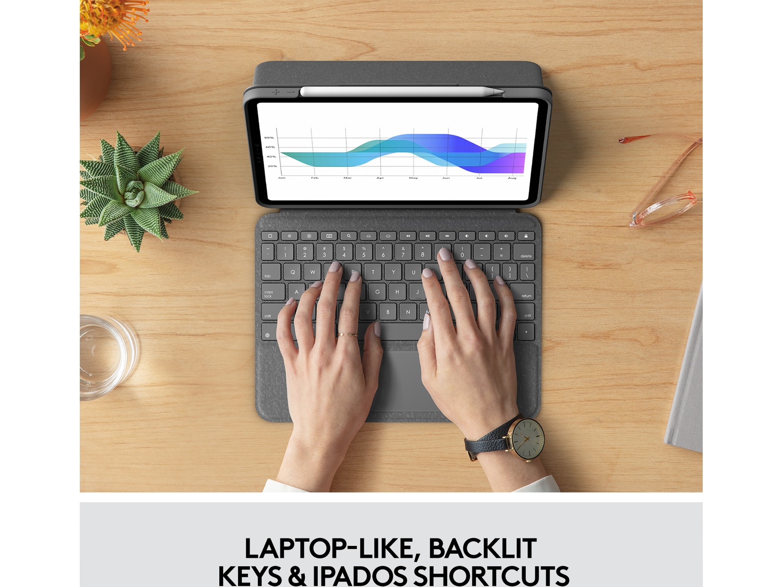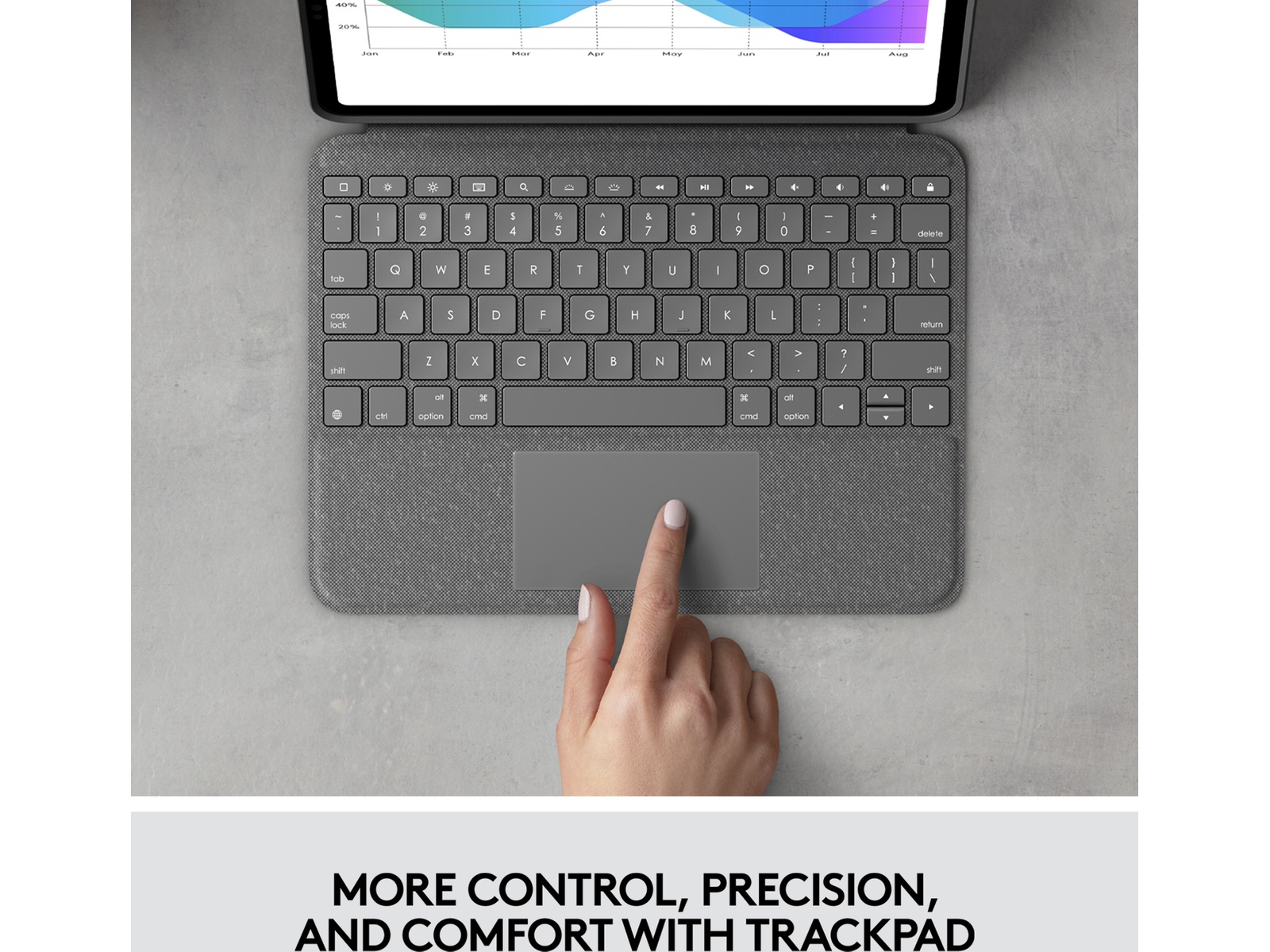 Använd den exakta styrplattan för att öka produktiviteten för appar som Notes, Pages, Numbers och Keynote. Markera kalkylarkceller, kopiera ord och redigera e-post på din iPad snabbare än någonsin.