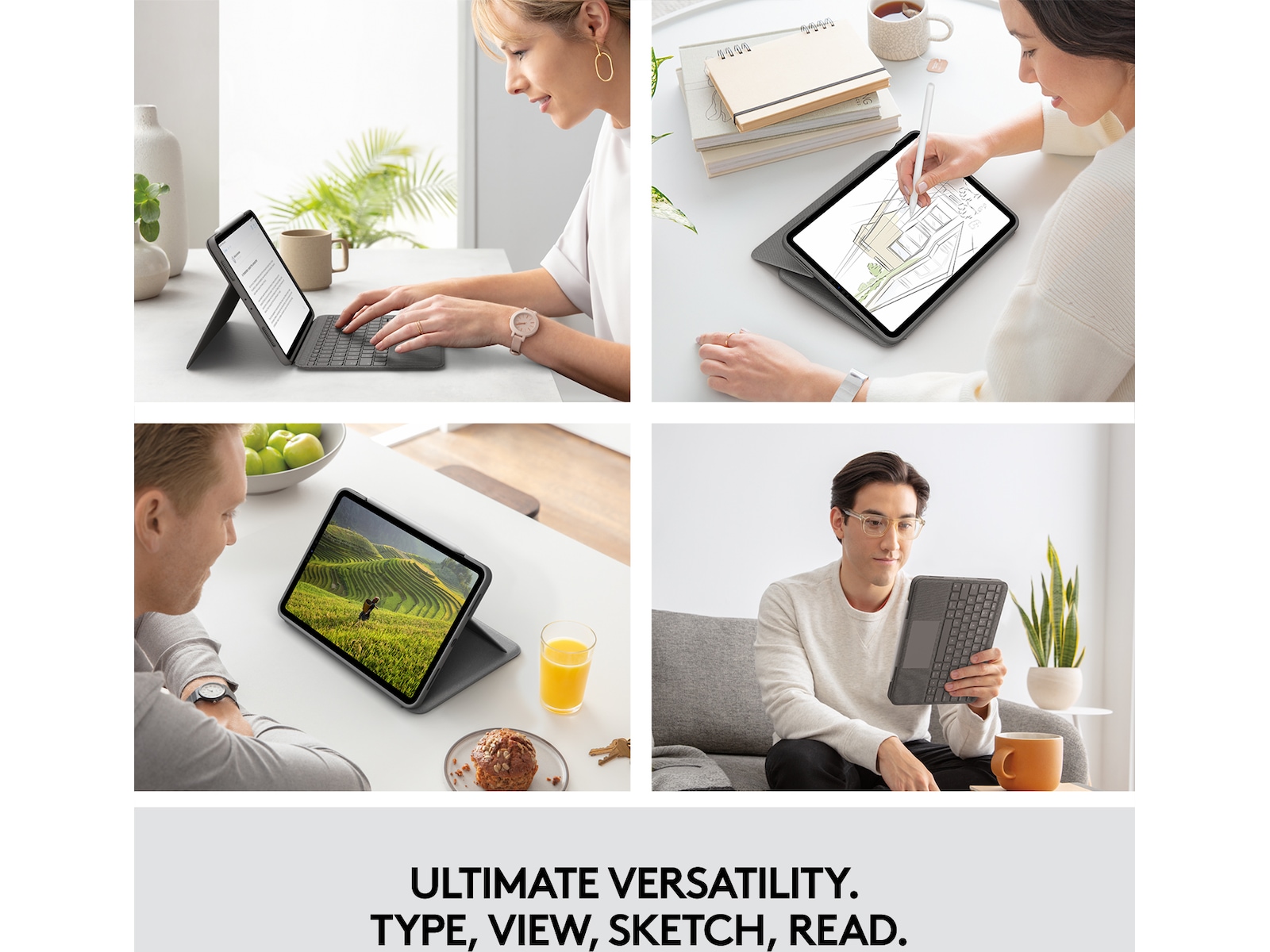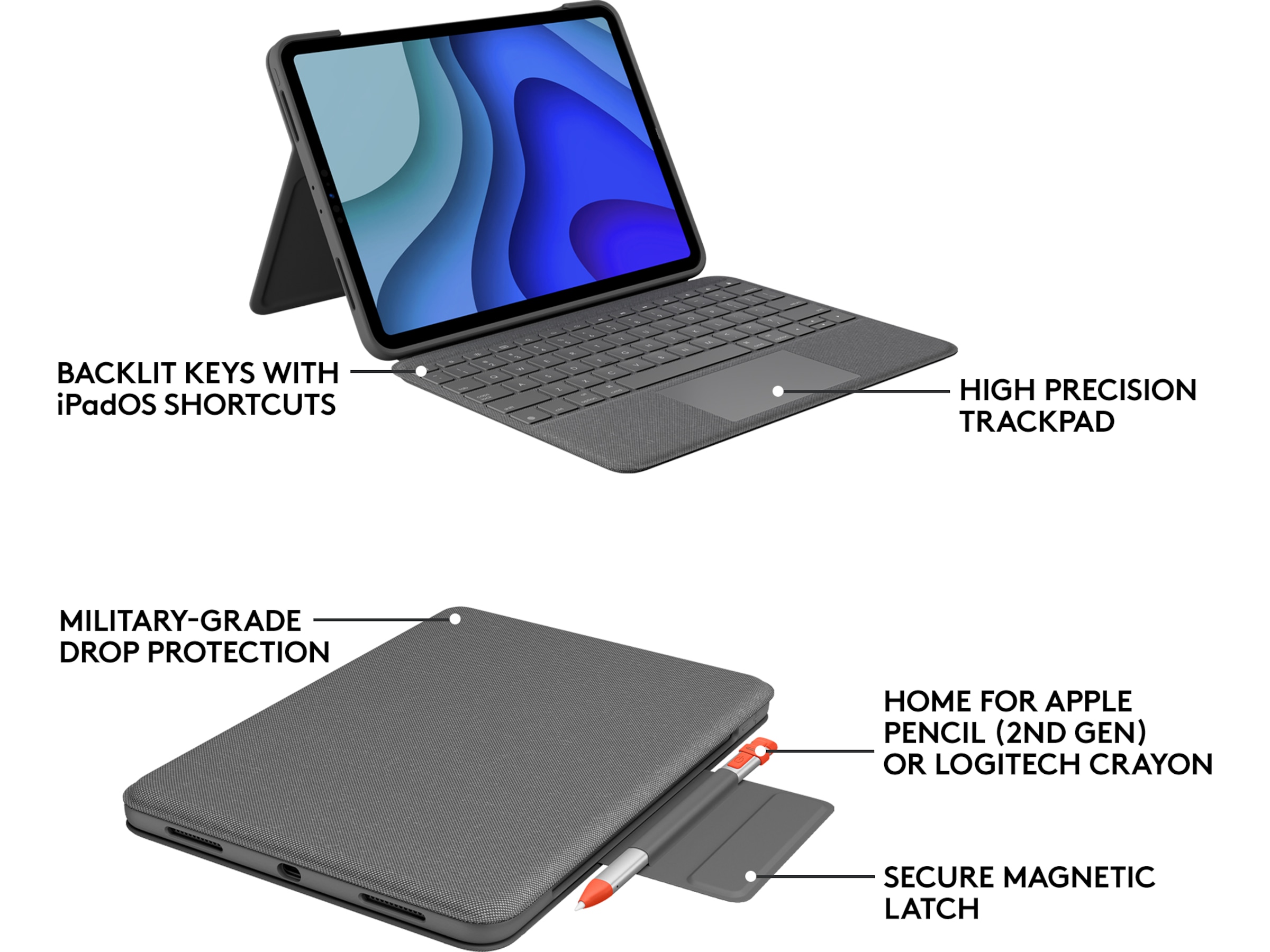 Skriv, skissa och läs med Folio Touch, den otroligt mångsidiga tangentbordsväskan med styrplatta för iPad Pro och iPad Air. Använd din iPad på helt nytt sätt med det justerbara stödet, det vikbara tangentbordet och den exakta pekplattan för bättre kontroll i dina favoritappar.
