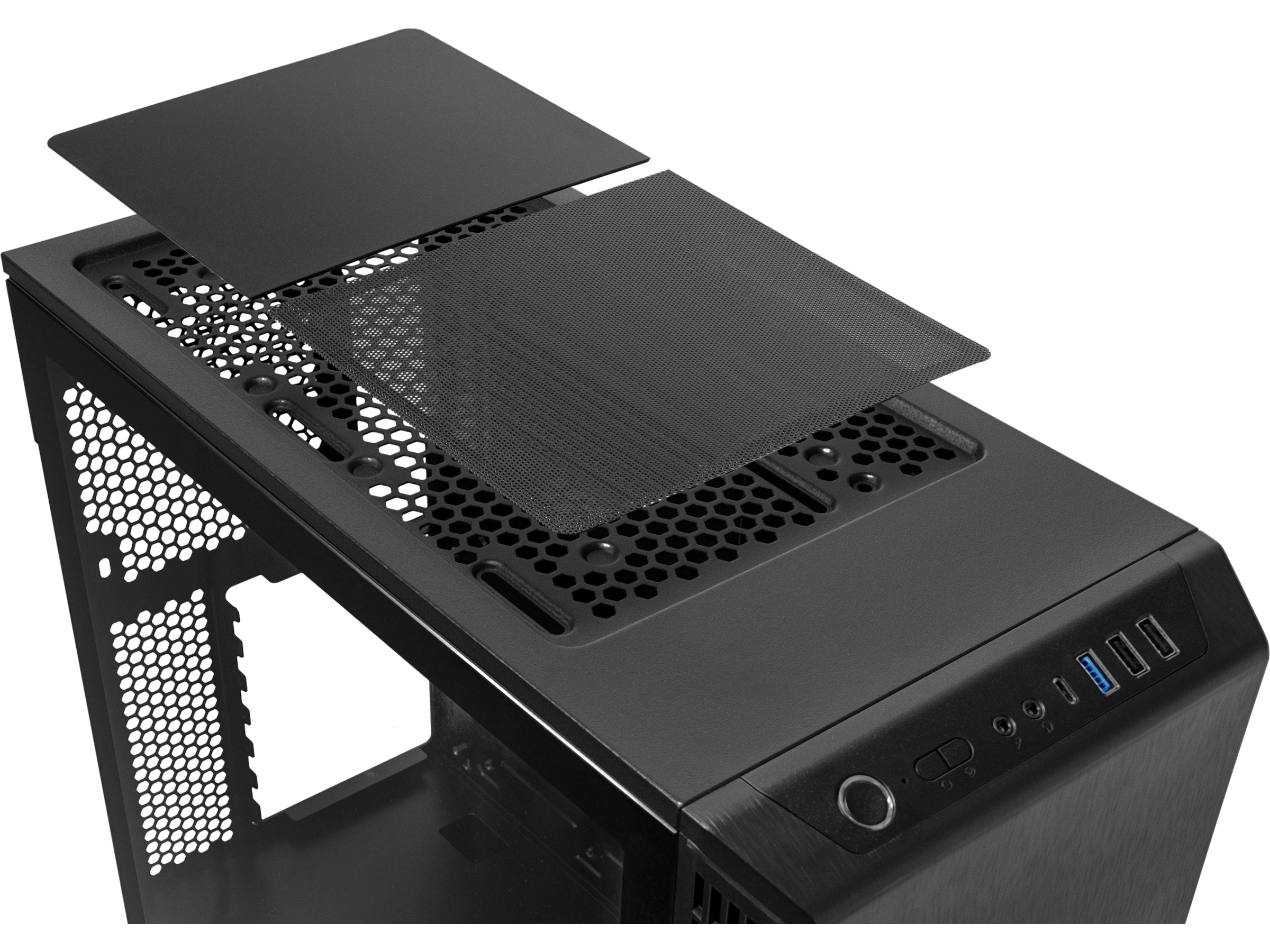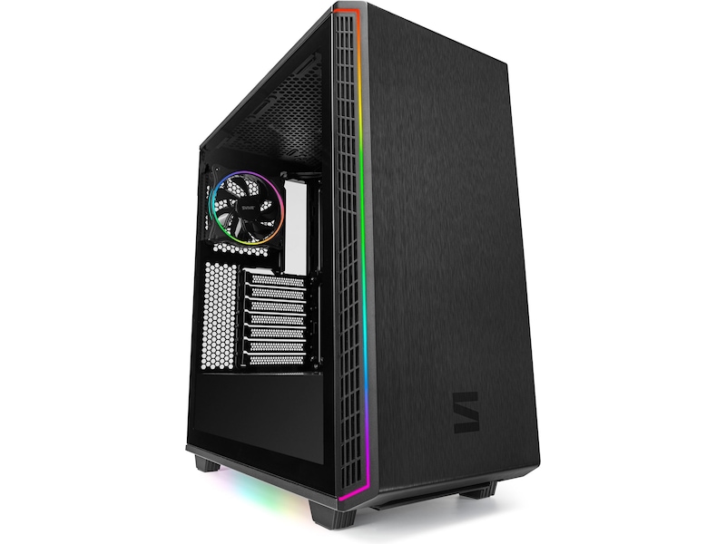 Sidopanelen är tillverkad i härdat glas som tål mycket mer slag och stötar än vanligt glas och som kommer att förbli repfritt under lång tid. Panelen kan enkelt tas bort - du behöver bara lossa en skruv för att komma åt komponenterna. Här ingår ARGB-hantering som fungerar med de flesta moderkortstillverkare. Om du väljer RGB-hantering via programvara på moderkortet, väljer du då bort styrning via knappar på frontpanelen.