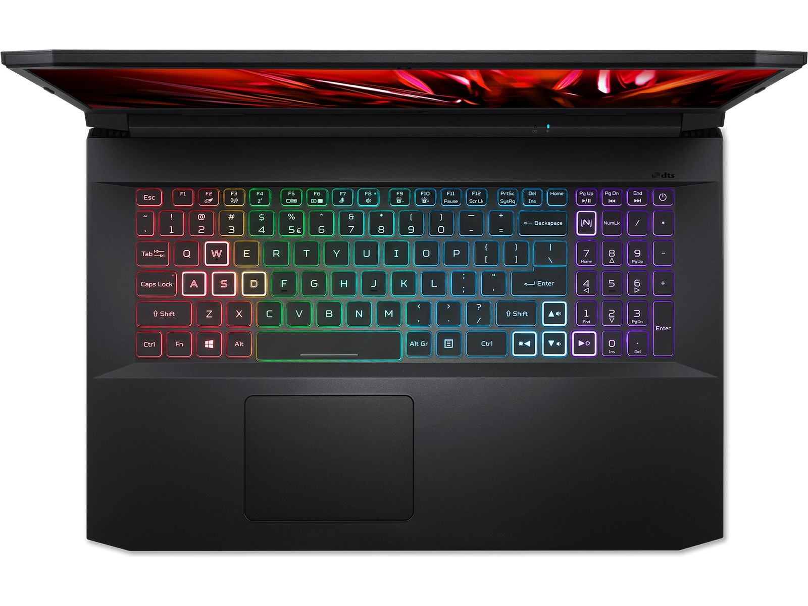 Sätt pricken över i:et med RGB-tangentbordet med fyra zoner och ta kommandot över datorns inre delar med NitroSense-tangenten. WSAD- och piltangenterna är också markerade för att vara lätta att se, medan själva tangentsvaret är direkt med en nertryckningslängd på bara 1,6 mm.