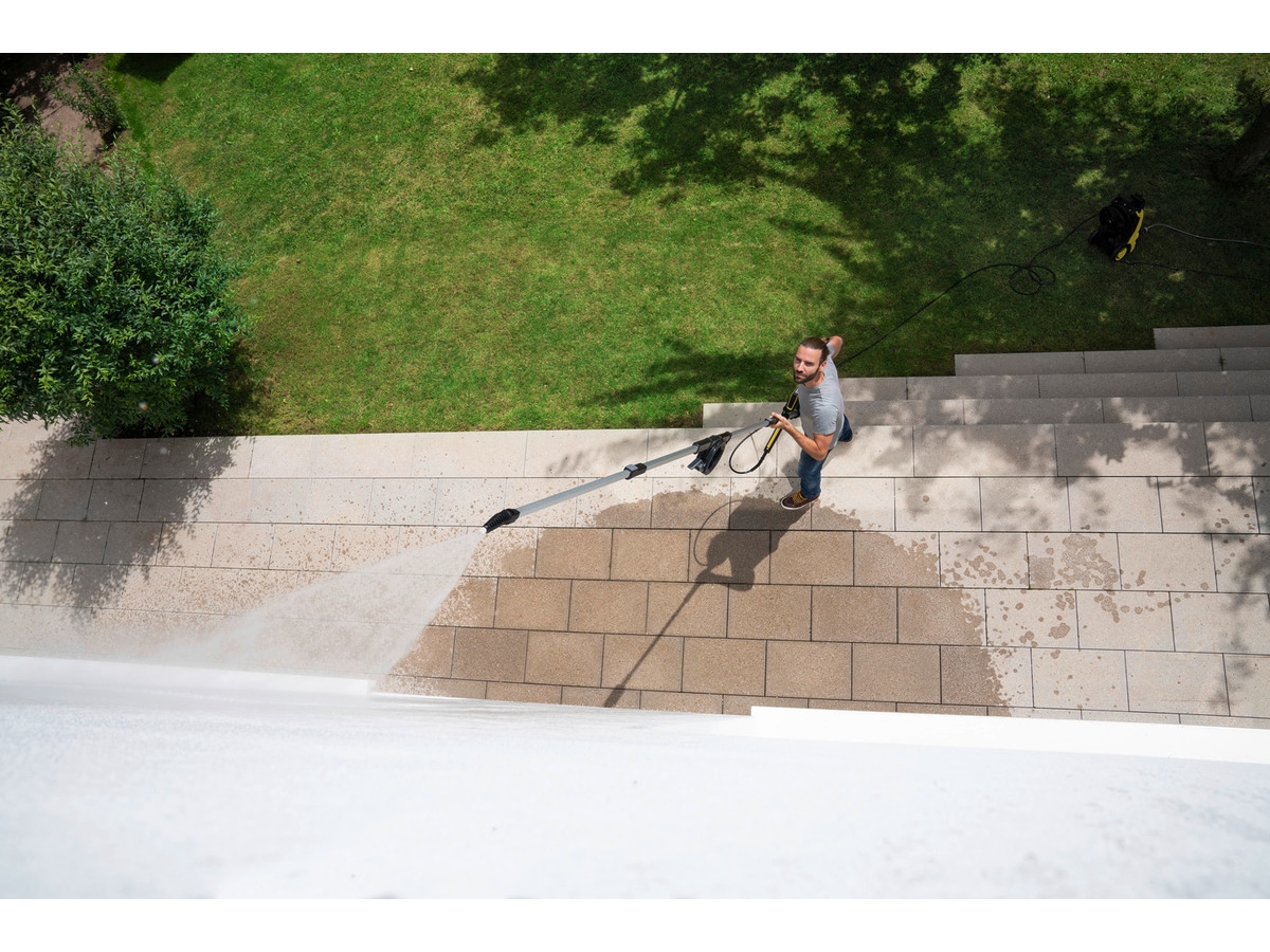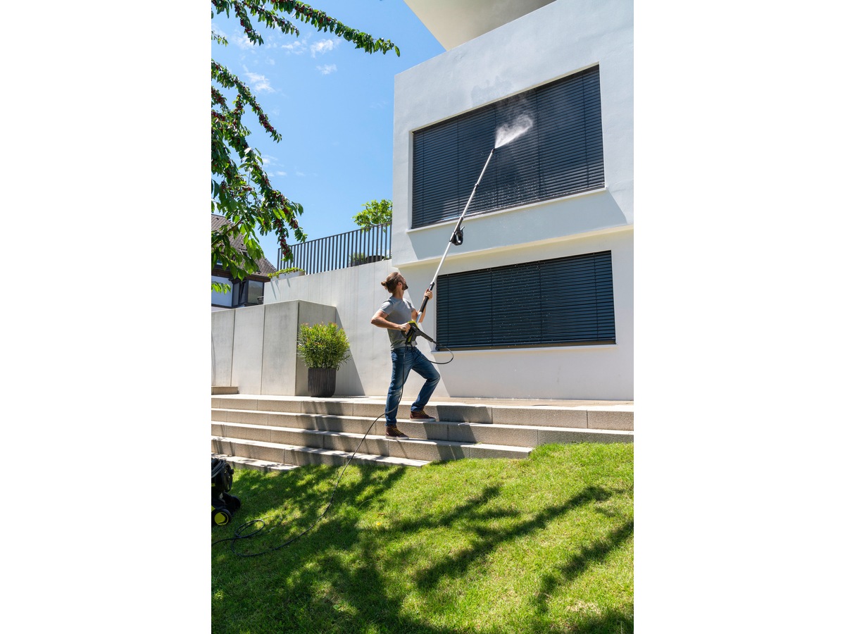 Med den teleskopiska spraylansen är det lätt att nå svåråtkomliga områden, t.ex. under fasader så att de kan rengöras snabbt och utan krångel.