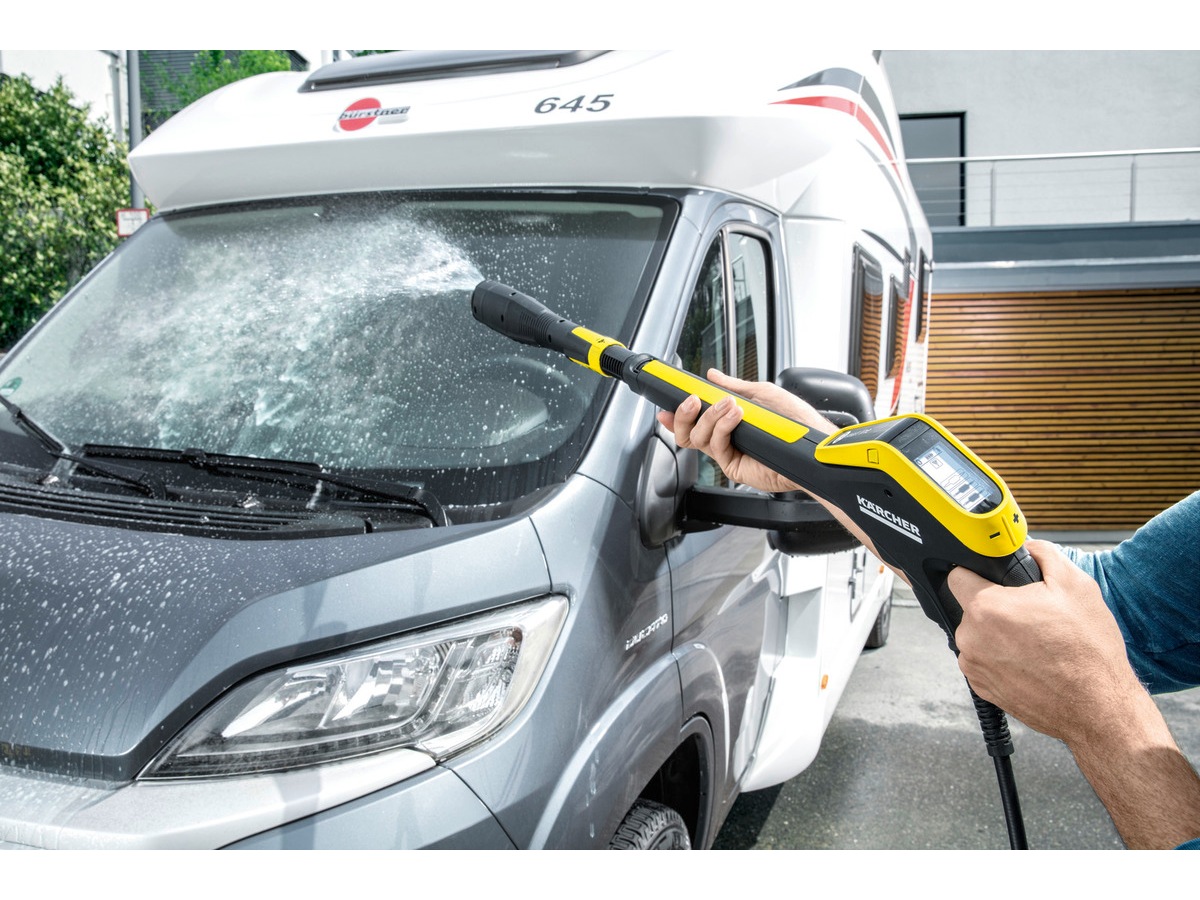K 7 Premium Smart Control högtryckstvätt kan enkelt anslutas till din smartphone via Bluetooth. Detta innebär att användaren stöds av Kärcher Home & Garden-appen med praktiska tips, tricks och inställningar för olika rengöringssituationer.