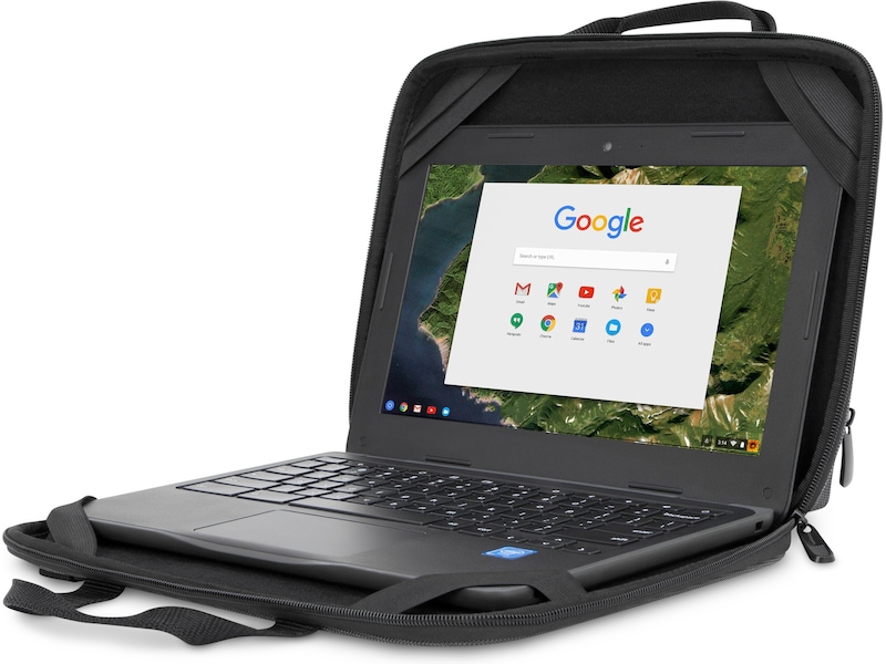 Det robusta handtaget erbjuder grepp och bärbarhet, medan det avtagbara axelbandet ger handsfreetransport. En stor förvaringsficka rymmer enkelt vardagens väsentligheter. Och ett ID-kortfack på utsidan gör det också enkelt att identifiera vem enheten tillhör (perfekt för klassrumsinställningar) eller ger snabb åtkomst för visitkort.