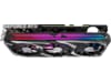 Våra axialfläktar har optimerats för en ny större kylfläns med nya fenor och större yta än tidigare generation. Antalet blad har ökat på alla tre fläktar, det finns 13 på mittenfläkten och 11 på sidofläktarna. Barriärringen på sidofläktarna har gjorts mindre för att möjliggöra större intag från sidorna och ge bättre luftflöde genom enheten. De extra bladen på mittenfläkten och den fullstora ringen ökar det statiska trycket för att blåsa luft direkt på GPU:ns värmespridare.