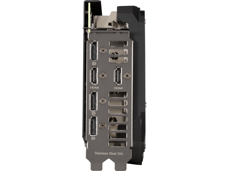 Vänd på kortet för att se ytterligare designförbättringar. Ett brett utblås i bakstycket och ett förkortat kretskort låter varm luft röra sig mot chassits fläktar istället för att återanvändas av grafikkortets cirkulerande fläktdesign. Ett fäste ger extra stabilitet till den viktiga kontakten mellan kärna och värmespridare. I/O-fästet är gjort av rostfritt stål som skyddar portarna och ger bättre fäste. En smart placerad Dual Bios-brytare gör det enkelt att byta mellan lägena "prestanda" och "tyst" för enkel justering av kortets standardbeteende utan mjukvara.