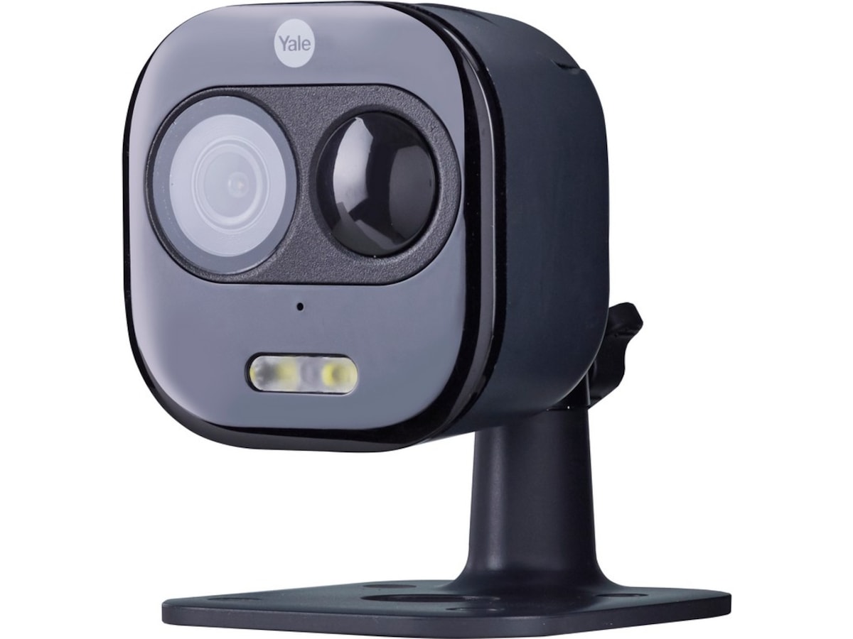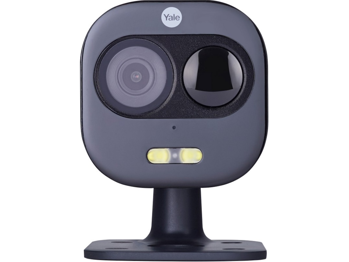 Yale View All-in-One-kameran kan användas både inomhus och utomhus. Den har en inbyggd PIR-rörelsedetektor, larmsirener och belysning (strålkastare).