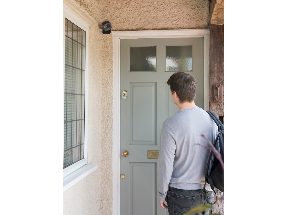 Detta är en utmärkt kamera att placera vid ytterdörren. Då kan du automatiskt meddelas i appen när någon är utanför, och du kan se och kommunicera med besökare innan du öppnar det elektroniska låset. Du kan också ställa in kameran så att den inbyggda lampan tänds automatiskt när du eller någon annan befinner sig framför dörren.
