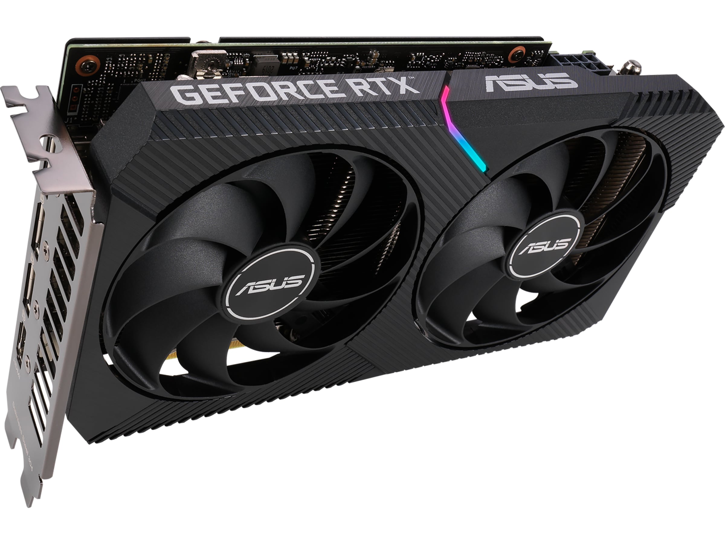 ASUS GeForce RTX 3060 DUAL kombinerar dynamisk termisk prestanda med bred kompatibilitet tackvare den senaste NVIDIA Ampere-arkitekturen. Avancerade kyllösningar hämtade från grafikkort av toppklass - inklusive två Axial-tech-fläktar för att maximera luftflödet till kylflänsen - är monterade i det 20 cm långa, två fack stora kortet - vilket ger mer kraft på mindre plats. Dessa förbättringar gör ASUS Dual till det perfekta valet för spelare som vill ha tung grafikprestanda i ett kompakt bygge.