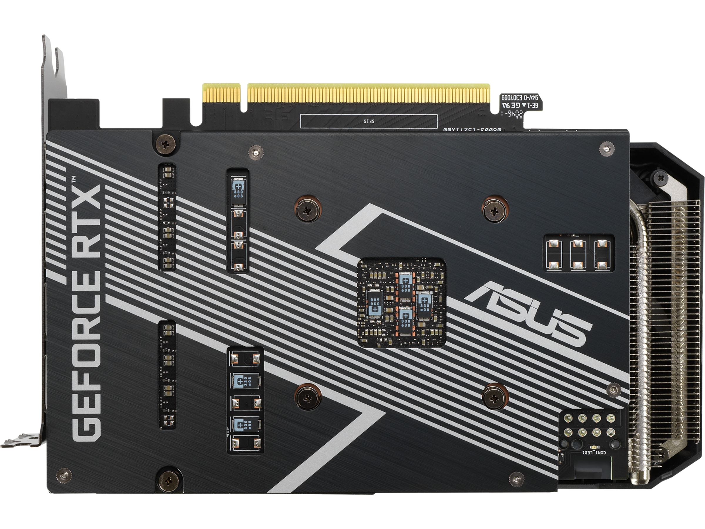 Två beprövade Axial-tech-fläktar har ett mindre nav som huserar längre blad och en barriärring för att öka lufttrycket nedåt. För att eliminera onödigt ljud pausar ett stoppläge alla fläktar när GPU-temperaturen sjunker under 50 grader och strömförbrukningen är låg.