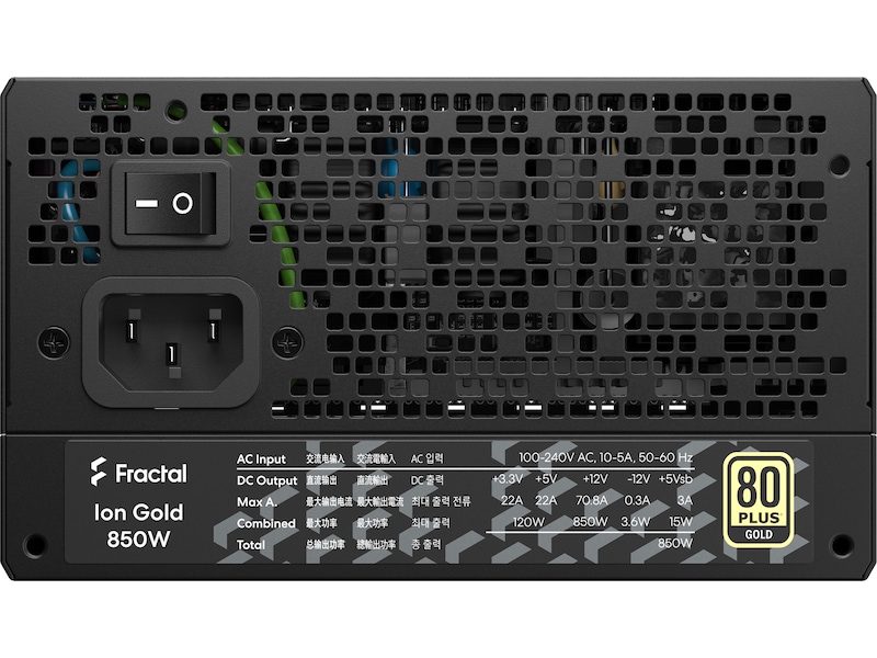 Ion Gold är utrustad med en stor temperaturkontrollerad Fractal Design Dynamic-fläkt på 140 mm, skräddarsydd för användning av strömförsörjningen med en exceptionellt låg minimihastighet.