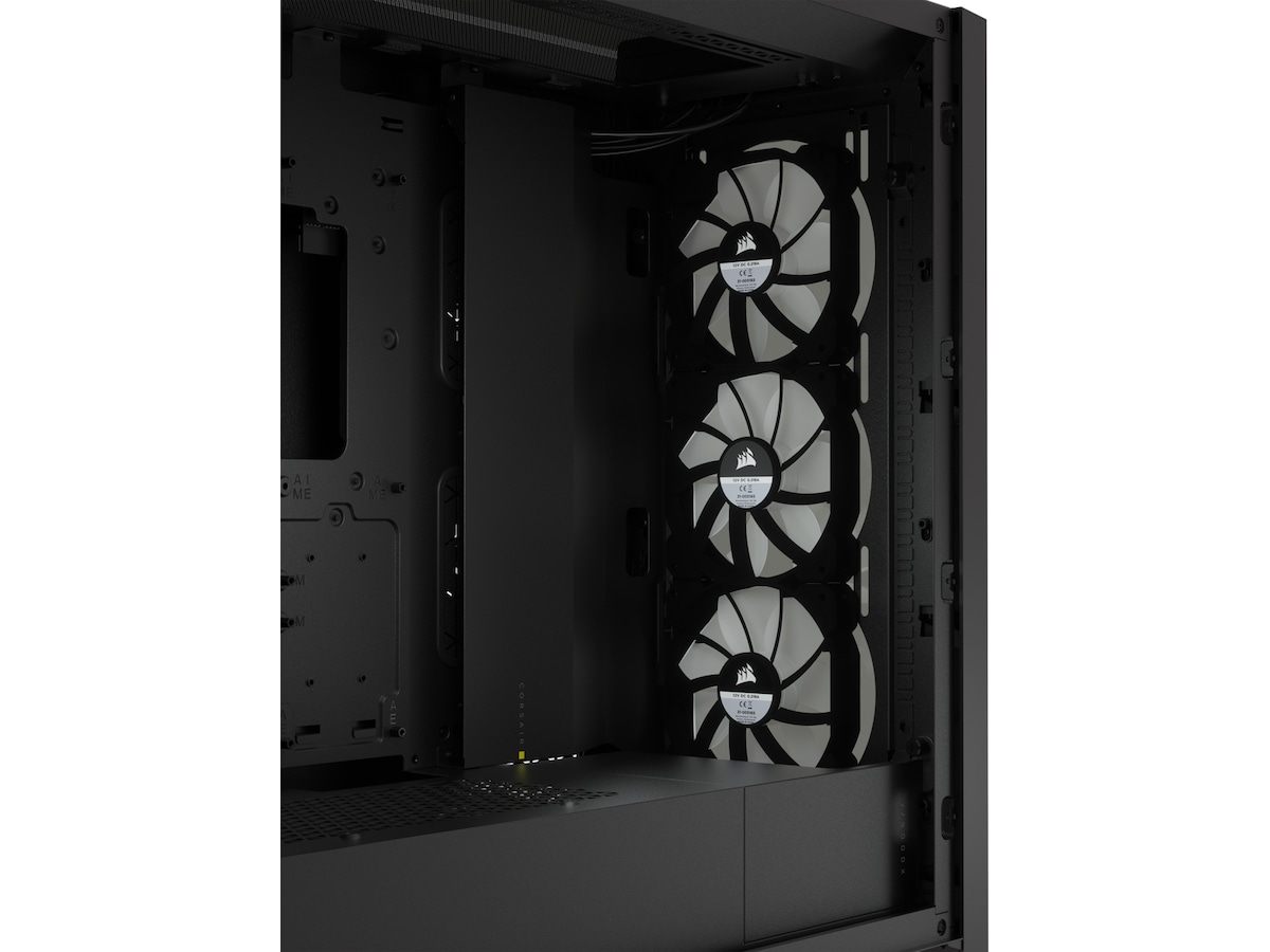 5000X RGB har en otrolig flexibilitet när det kommer till kylning. Med upp till tio 120 mm fläktfästen, tre inkluderade SP RGB ELITE-fläktar med CORSAIR AirGuide-teknik och tre separata 360 mm radiatorplatser, är den enda gränsen för dina kylningsalternativ din fantasi.