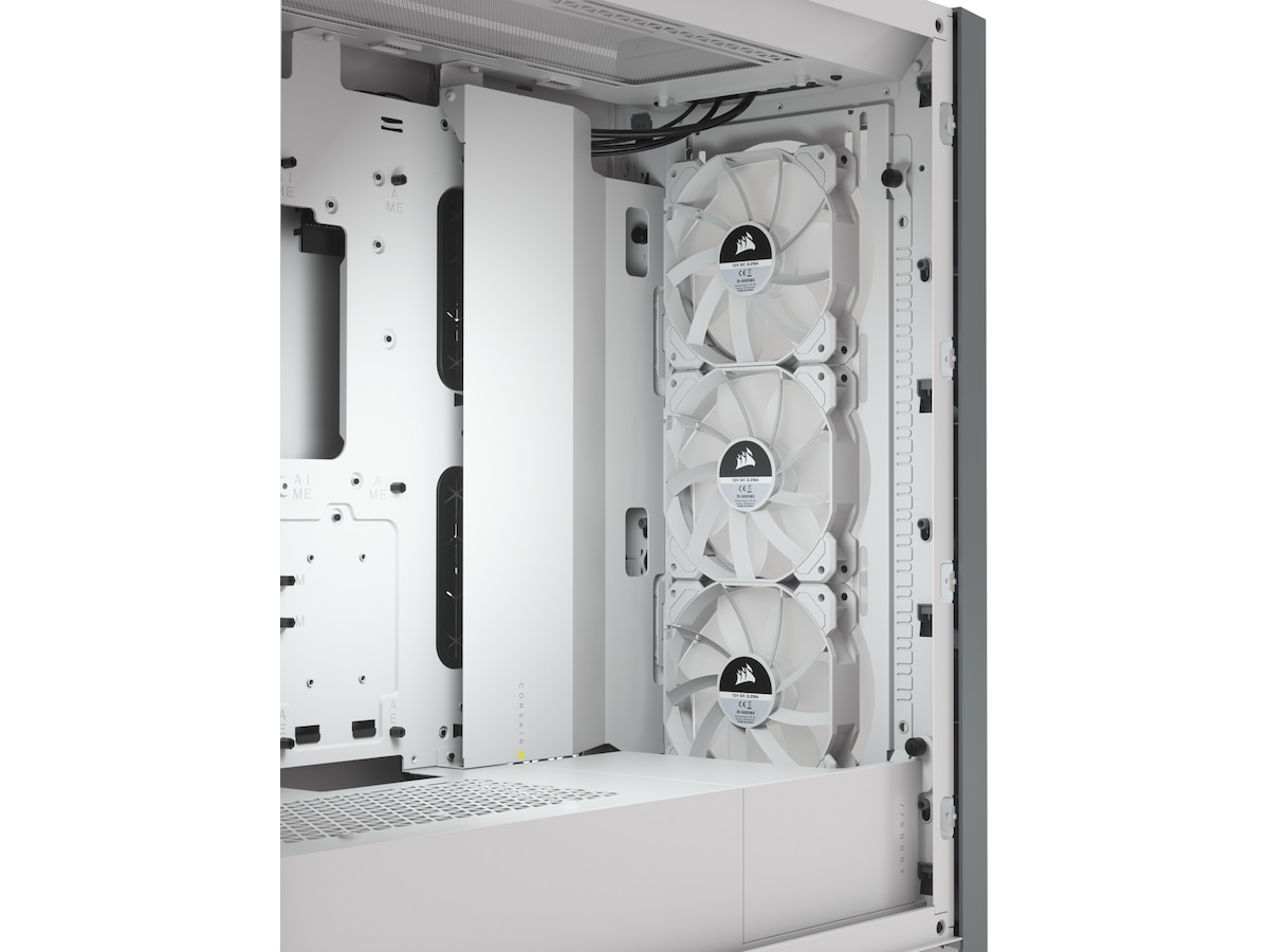 5000X RGB har en otrolig flexibilitet när det kommer till kylning. Med upp till tio 120 mm fläktfästen, tre inkluderade SP RGB ELITE-fläktar med CORSAIR AirGuide-teknik och tre separata 360 mm radiatorplatser, är den enda gränsen för dina kylningsalternativ din fantasi.