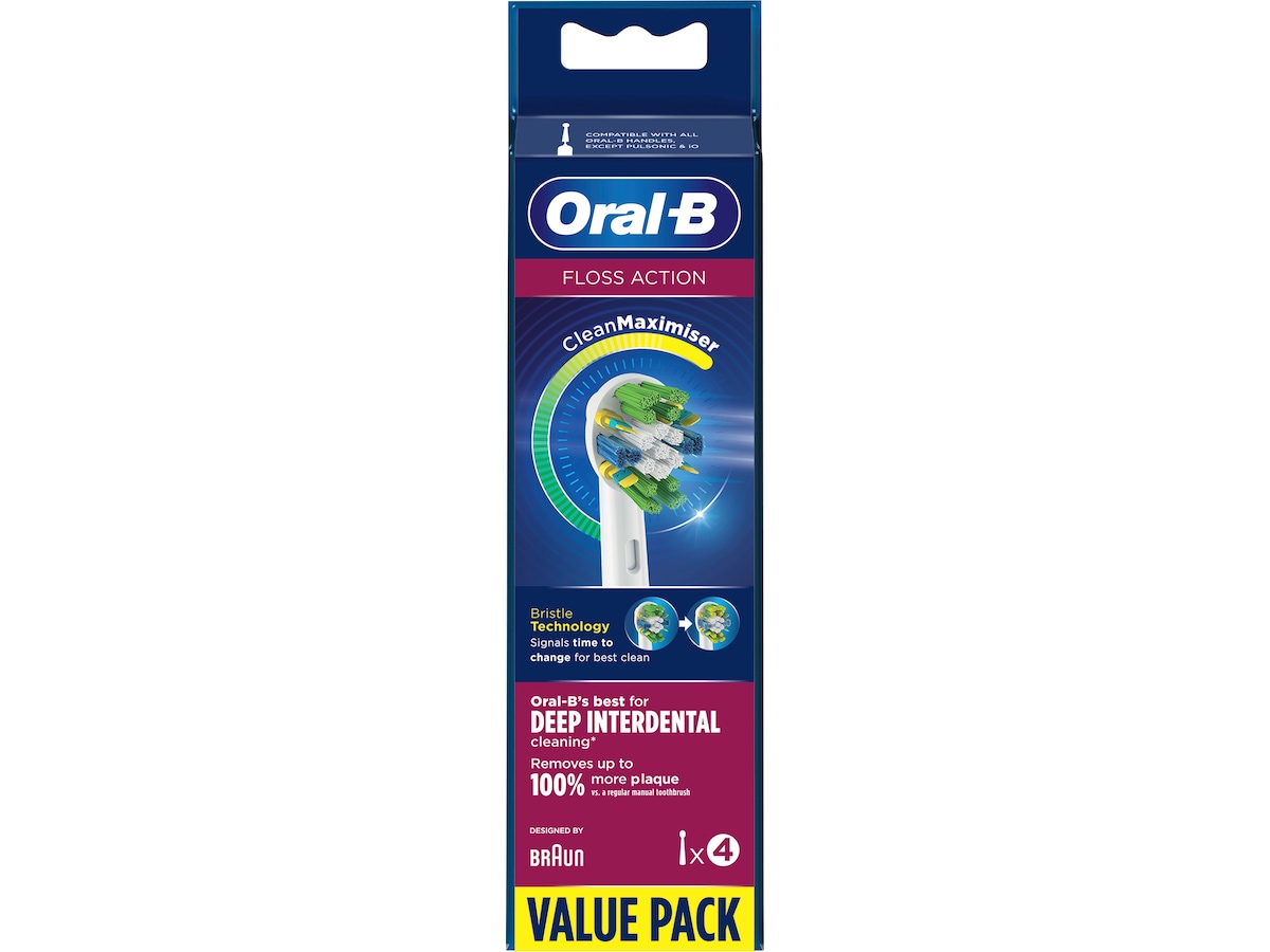 FlossAction är ett av Oral-B:s främsta refillborsthuvuden och har specialdesignade MicroPulse borststrån som lossar plack för att ta bort upp till 100 % mer plack än en vanlig manuell tandborste.