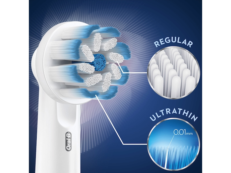 Sensitive Clean är ett av Oral-B:s ledande refillborsthuvuden och har ultratunna borststrån som är skonsamma mot tandköttet kombinerat med vanliga borststrån som är tuffa mot plack.