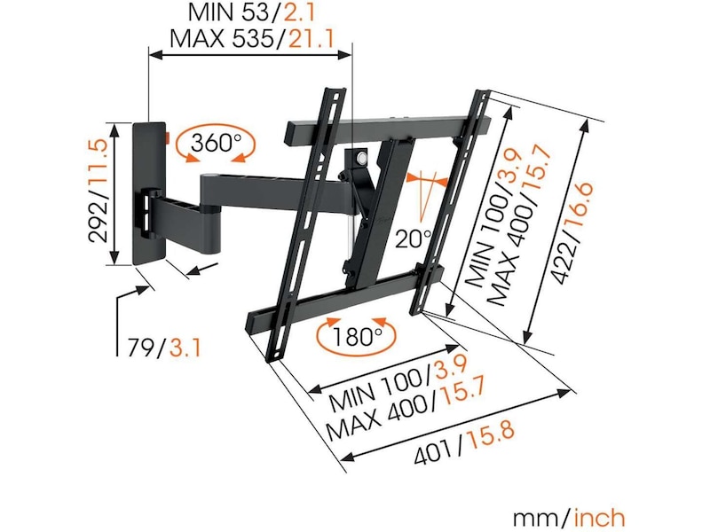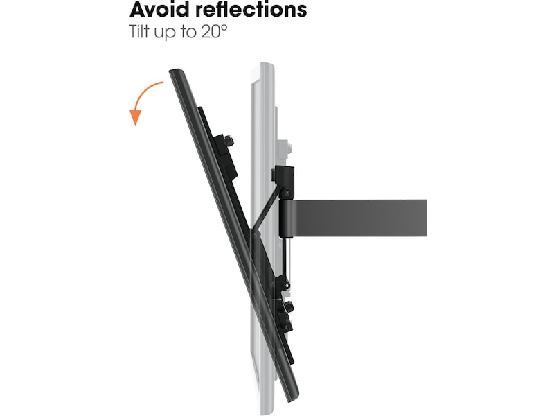 Oavsett vilken TV du vill montera, finns det en stor chans att du hittar ett lämpligt rörligt väggfäste. För inom det stora sortimentet av Vogel’s WALL-serie kommer du säkert att hitta ett rörligt väggfäste som passar din TV! Du kan vrida och luta TV:n så att den har en perfekt position, så att du bekvämt kan titta på TV. Utan skärmbländning eller fläckar, för du kan helt enkelt vända bort dem. Du använder det rörliga väggfästet WALL intuitivt, och genom det smidiga gångjärnet reagerar TV-väggfästet enkelt på dina justeringar.