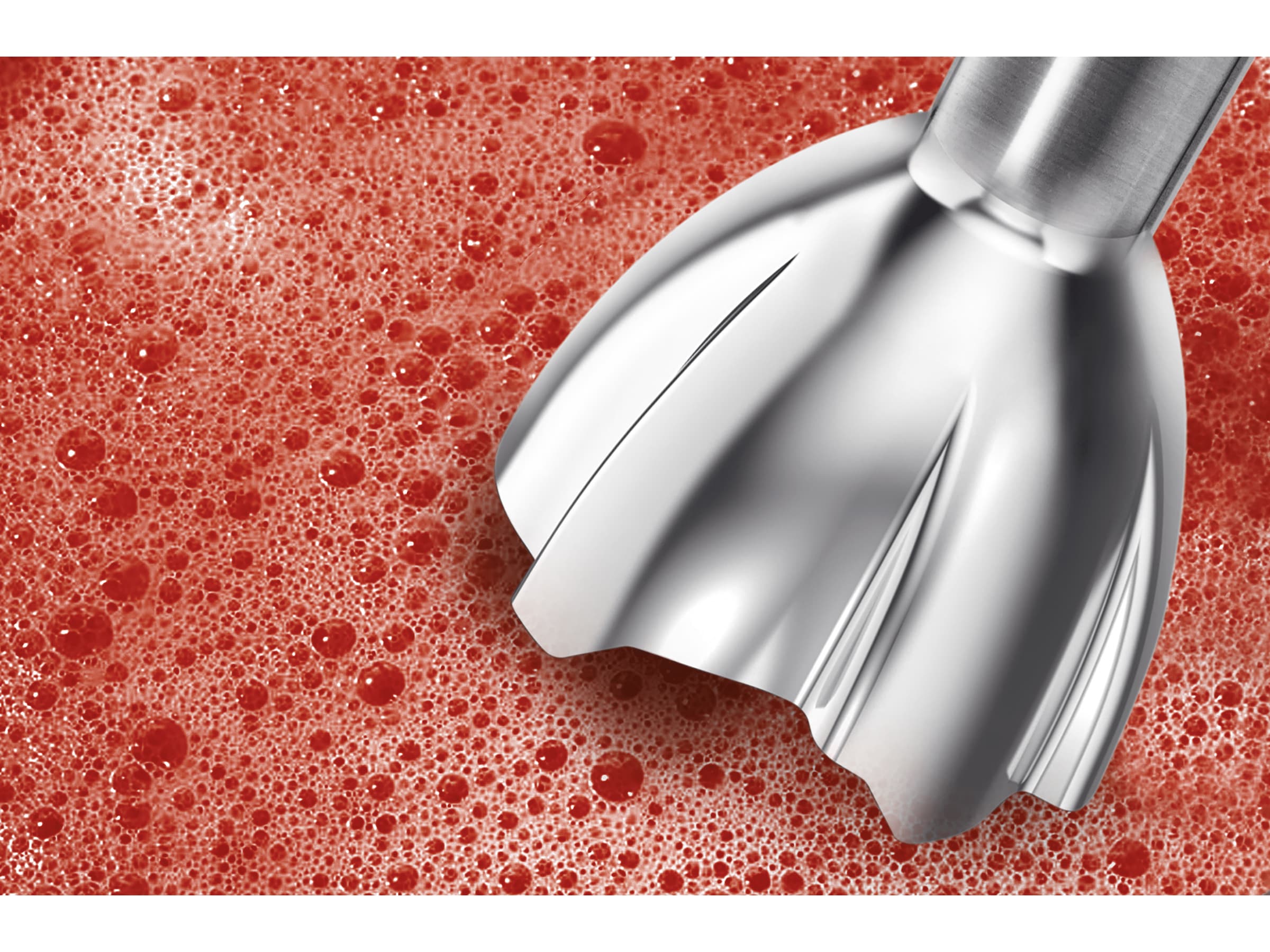 Det har aldrig varit enklare att mixa och blanda. Mixerfotens räfflade design ger flera fördelar: Maten pressas mot QuattroBlade Pro med sina 4 knivar, för en effektivare blandning. Dessutom reduceras sugkraften nedåt, vilket ger bättre kontroll utan avbrott och stänk.