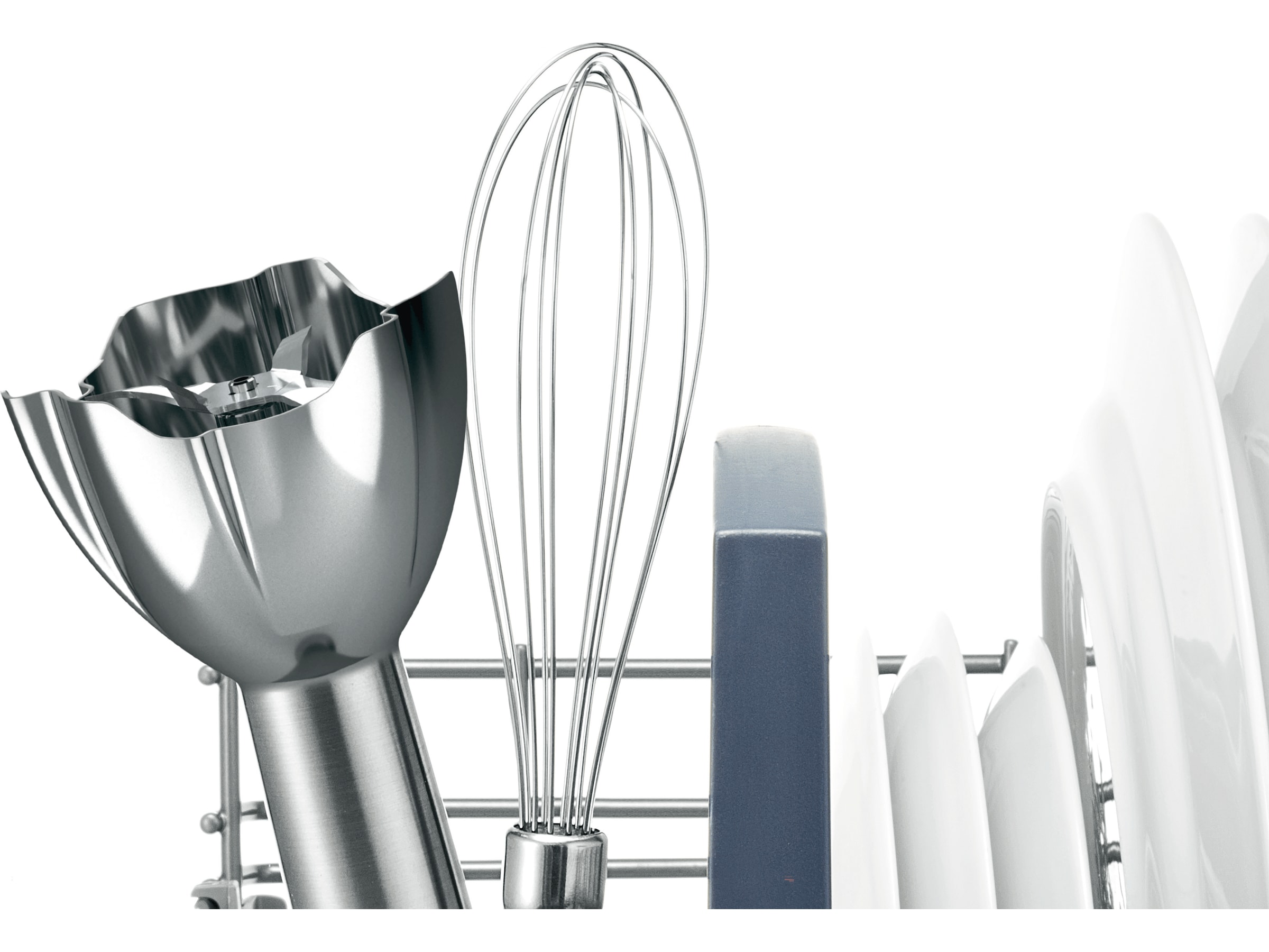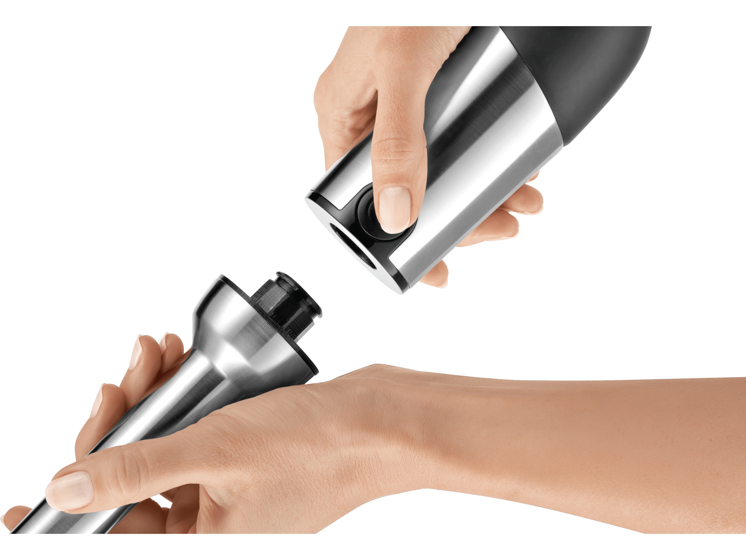 Rengöringen är enkel och snabb. Med hjälp av ett klickfäste kan mixerfoten enkelt tas bort från motordelen. för rengöring under rinnande vatten eller i diskmaskinen.