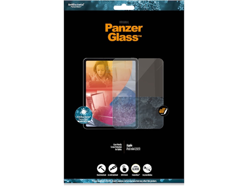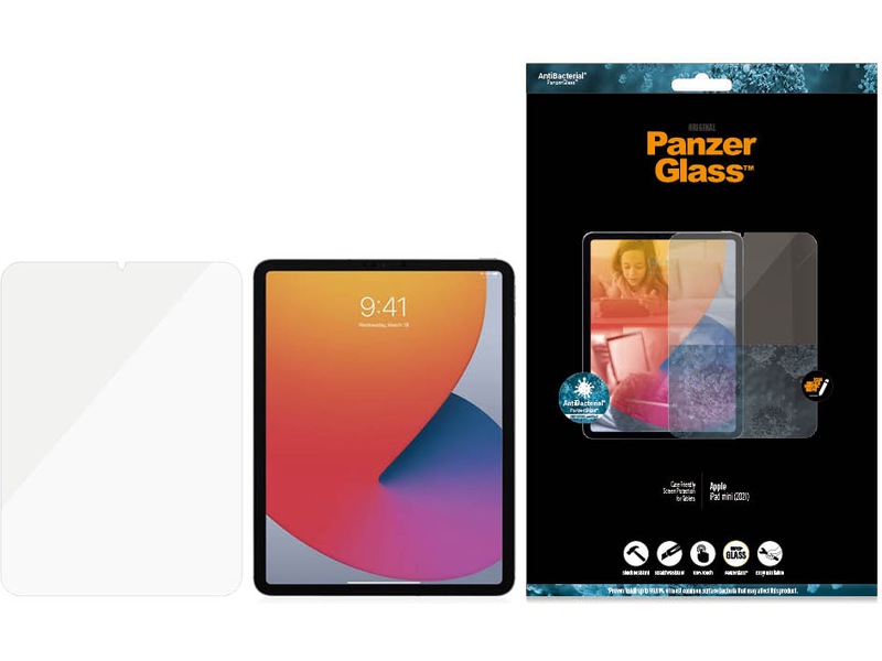 PanzerGlass™-skärmskydd för Apple iPad Mini 6th Gen 8,3” (2021) fungerar med skal och täcker hela skärmens yta.