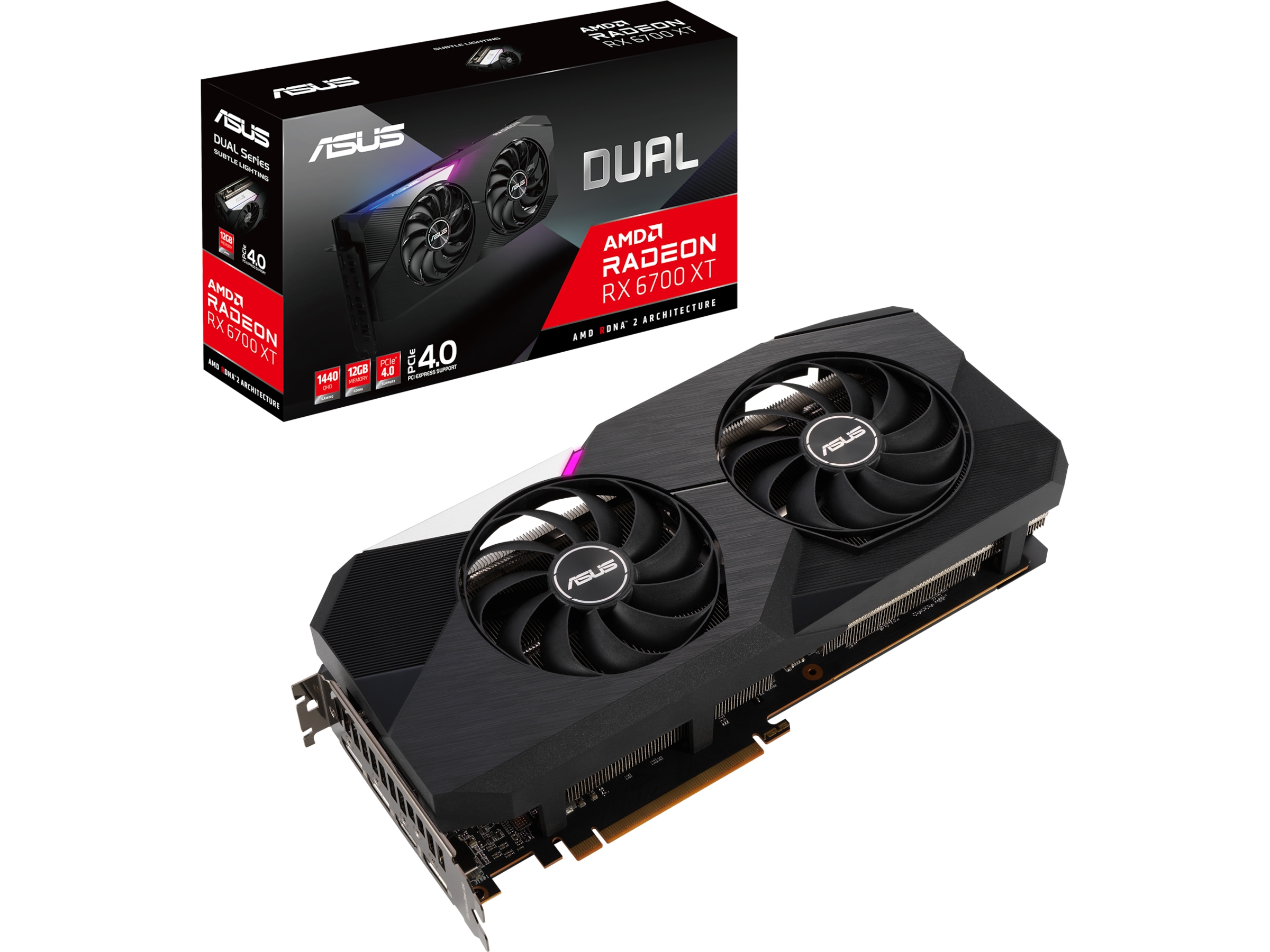 ASUS Dual Radeon™ RX 6700 XT, som levererar den senaste AMD RDNA™ 2-arkitekturupplevelsen i sin renaste form, kombinerar prestanda och enkelhet som ingen annan. Dual GeForce RTX utnyttjar avancerade kyltekniker som härrör från premium grafikkort och väljer substans över stil; det perfekta valet för en välbalanserad konstruktion. Slå dig ner och njut av banbrytande spelframgångar.