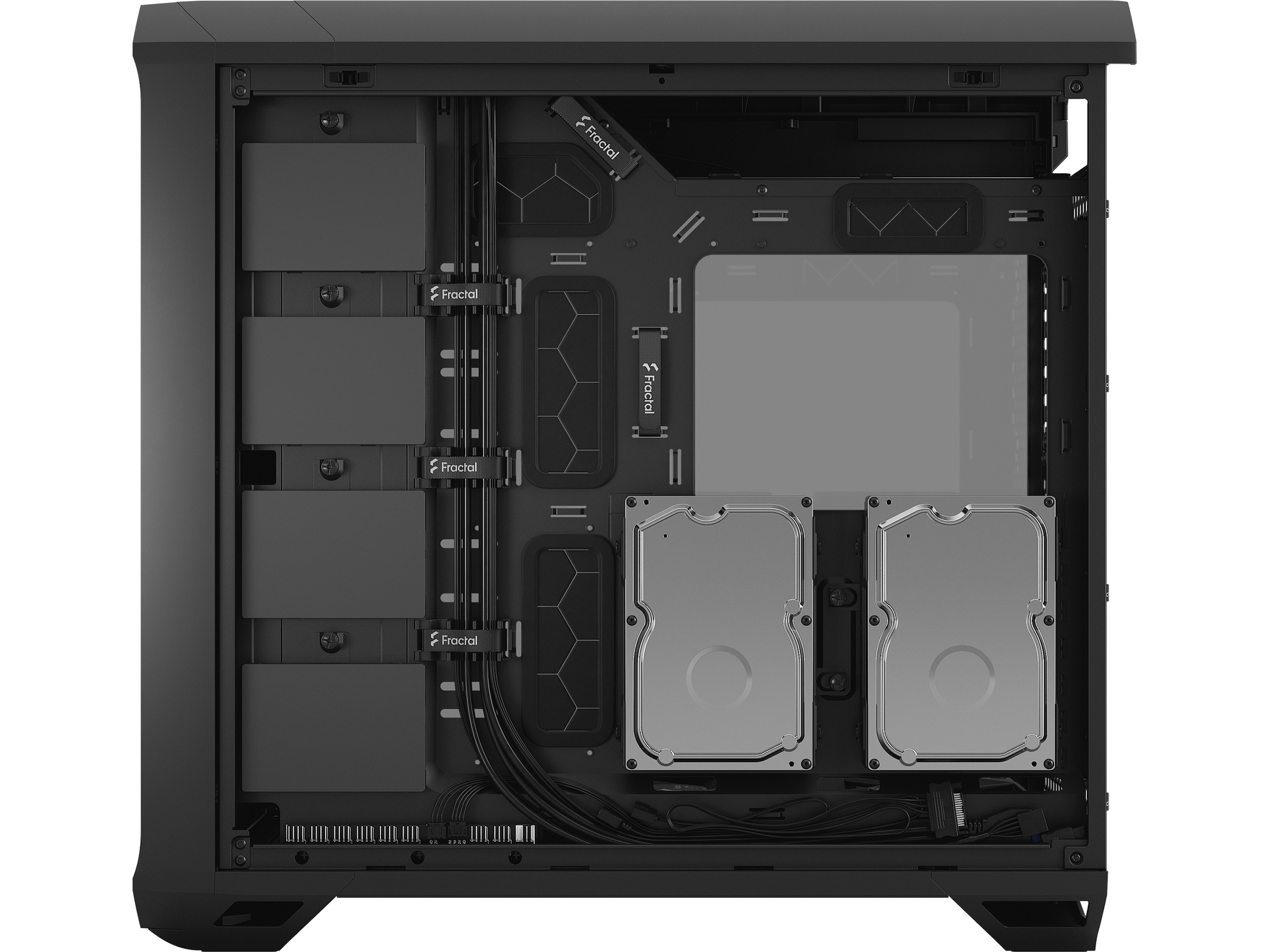 - Strömlinjeformad öppen interiör ger gott om andningsutrymme för komponenter och maximerar prestandapotentialen för både luft- och vattenkylning