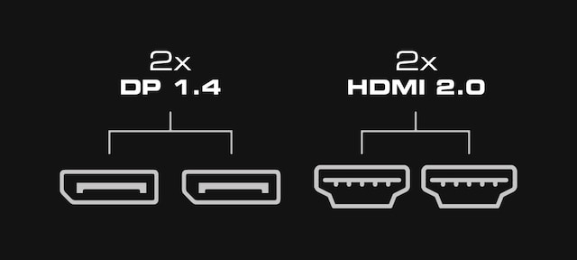 - 2x DisplayPort 1.4 med uppdateringsfrekvens upp till 180 Hz,