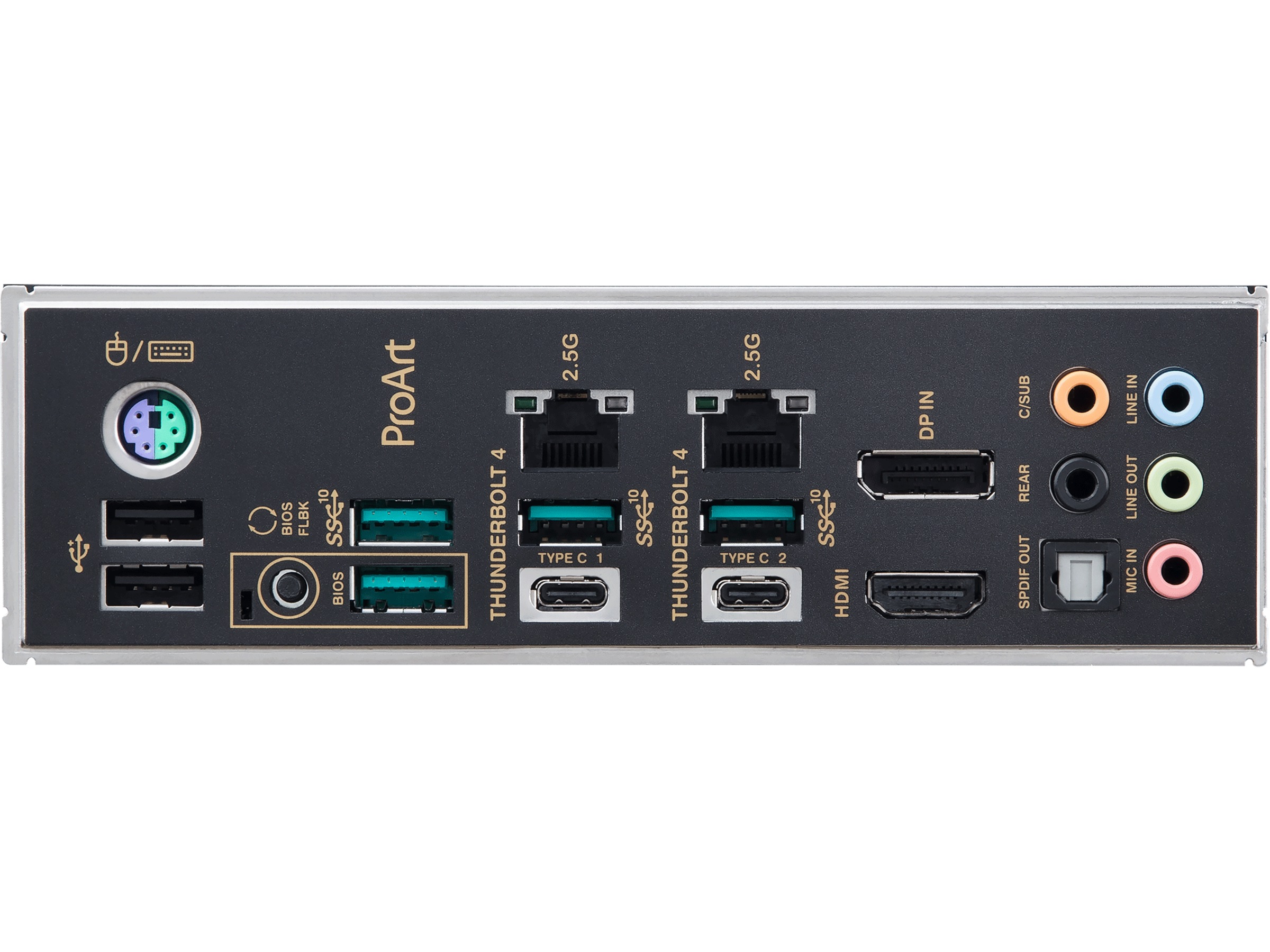 | Gränssnitt | 1 x HDMI, 2 x LAN (2.5Gigabit Ethernet), 1 x DisplayPort-ingång, 1 x ljudutgång (bakre) - mini-jack, 2 x Thunderbolt 4/USB-C Gen2, 1 x ljudingång - mini-jack, 1 x ljudutgång - mini-jack, 1 x ljudutgång (center/subwoofer) - mini-jack, 1 x TOSLINK, 2 x USB 2.0, 1 x mikrofon - mini-jack, 1 x PS/2-tangentbord/mus, 4 x USB 3.2 Gen 2 |