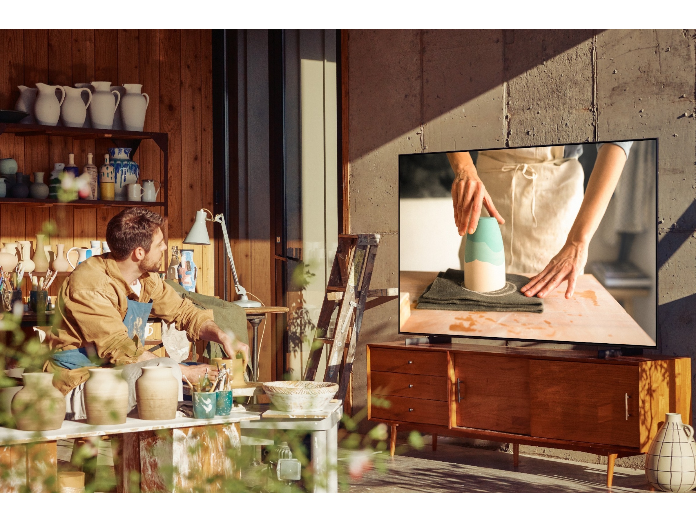 En smidig och skräddarsydd design ger denna TV ett stilrent intryck, vare sig den står på fot eller monteras på vägg.