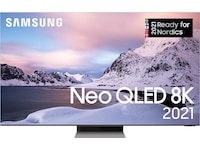 En Neo QLED TV i högsta kvalitet. Med stilren design och en bildkvalitet i en klass för sig tar TVn din helhetsupplevelse till en ny nivå. Med knivskarp upplösning i 8K ända ut i kanterna, finns det ingenting som hindrar dig från att fullkomligt slukas av innehållet.