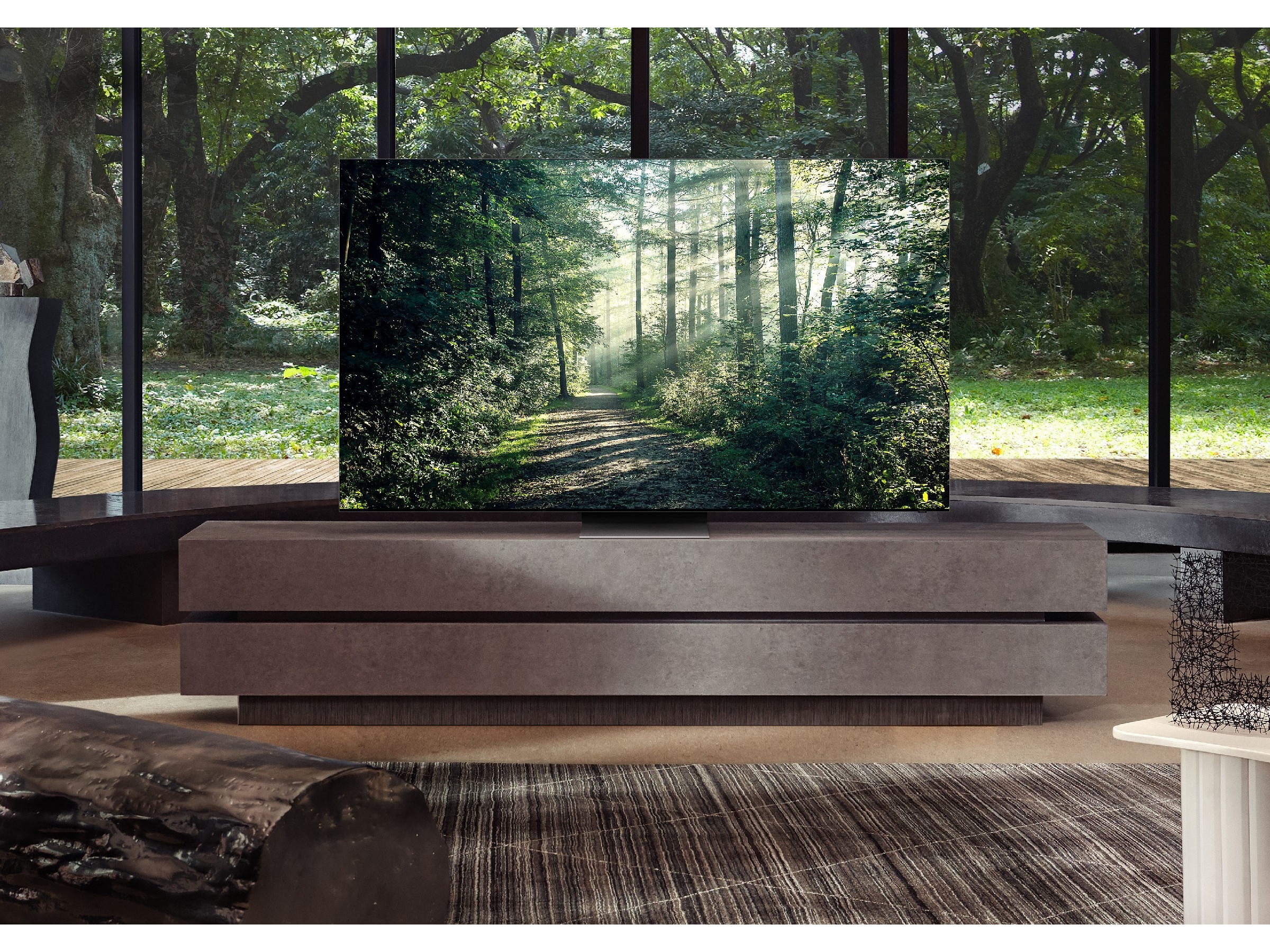 "Samsung QN900A levererar 8K innehåll med fantastisk skärpa. TV:ns snygga och stilrena design gör att den enkelt smälter in i omgivningen"
