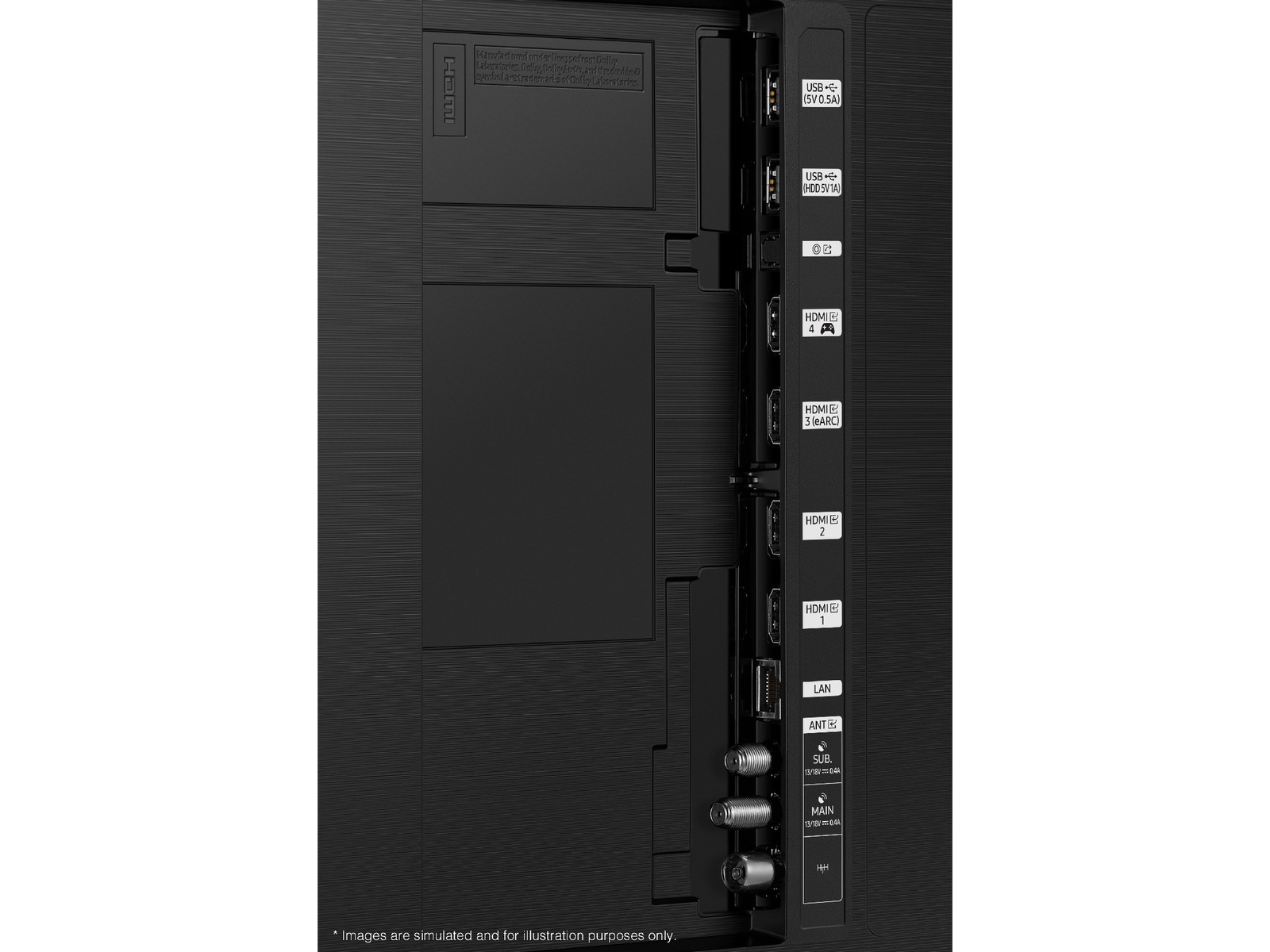 Digital ljudutgång (optisk), 4 x HDMI, 2 x USB, LAN |
