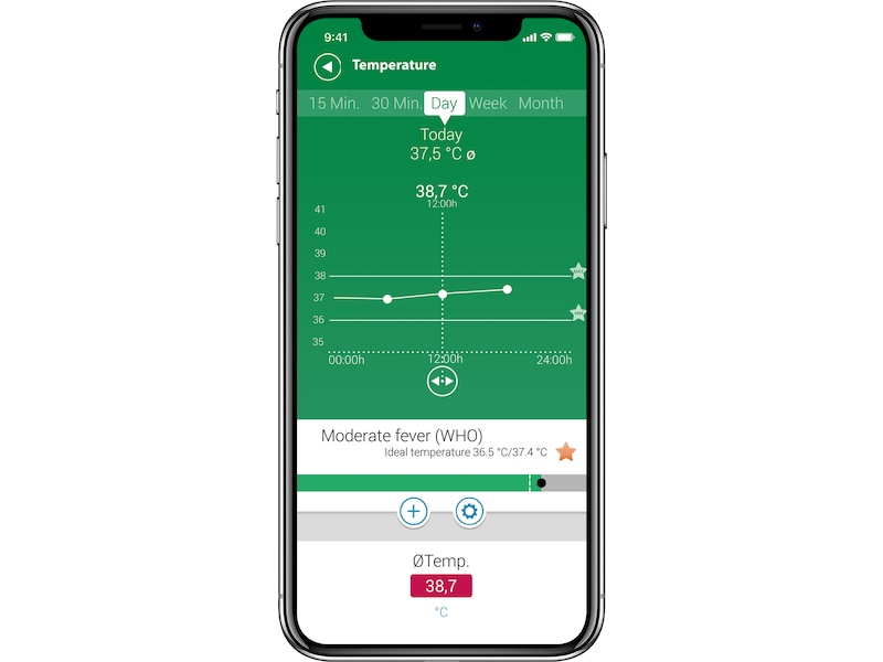 Med den infraröda termometern TM 750 kan du mäta kroppstemperaturen exakt på pannan eller i örat.