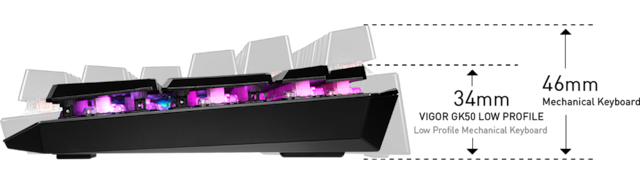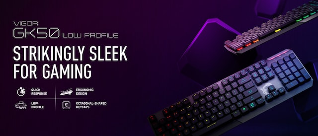 Smal och lätt design kompletterar det eleganta utseendet på VIGOR GK50 LOW PROFILE gamingtangentbord.