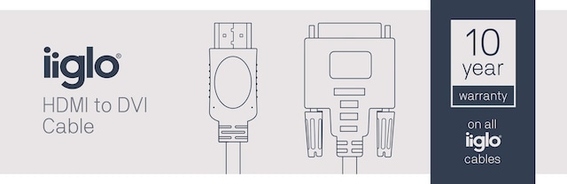 iiglo högkvalitets HDMI till DVI kabel levereras med 10 års garanti.