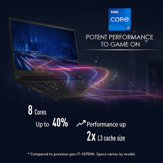 *Prestanda jämfört med i7-10750H. Specifikationerna varierar beroende på modell.