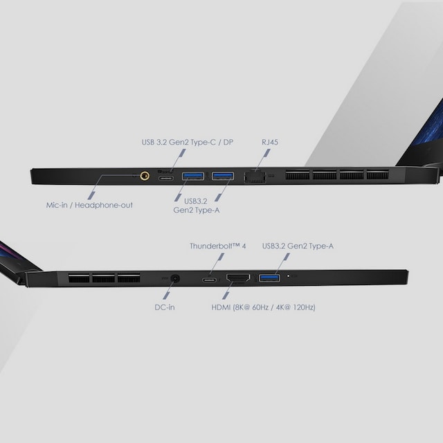 njut av en upplösning på upp till 8K via Thunderbolt™ 4 eller mini DisplayPort för lite extra produktivitet och nöje.