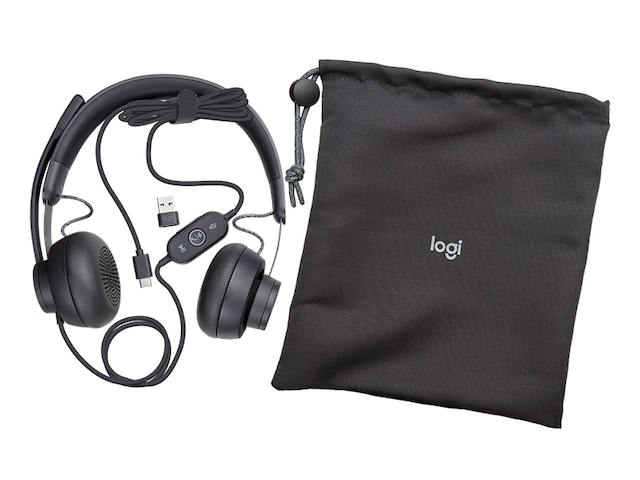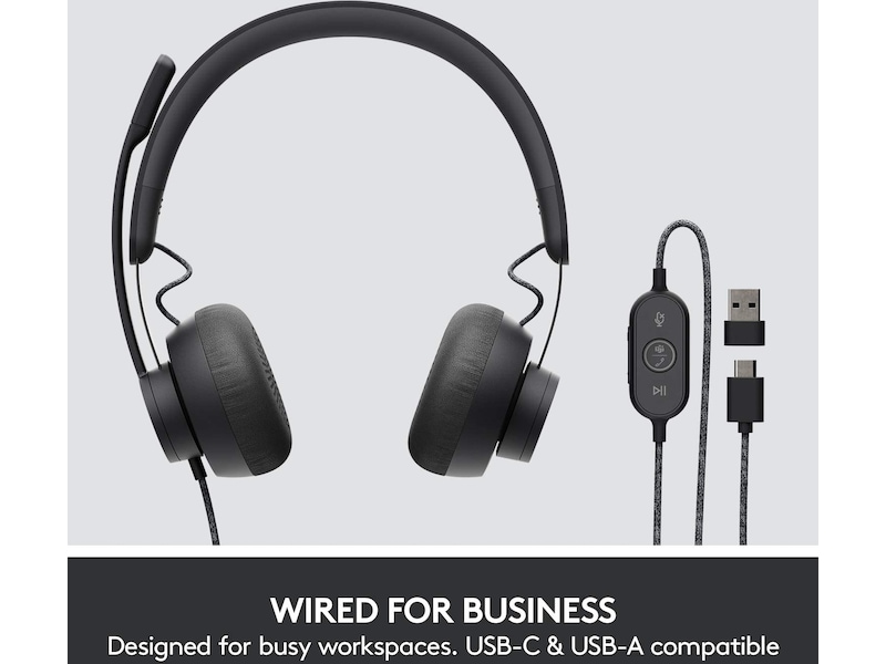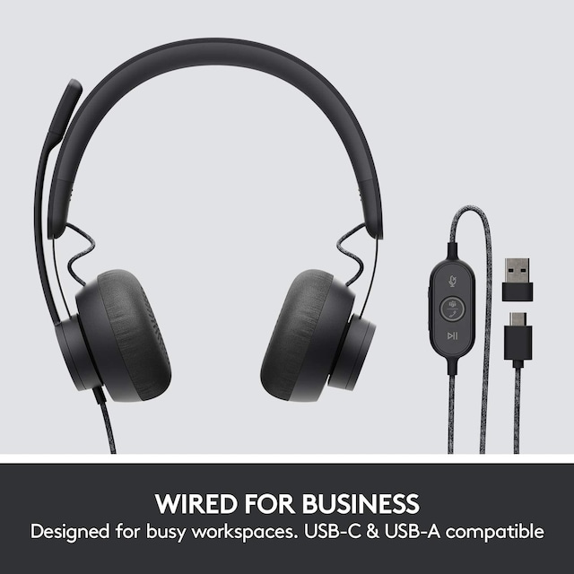 Logitech Zone Wired Noise Cancelling Headset, certifierat för Microsoft Teams med avancerad brusreducerande mikrofonteknik för Open Office-miljöer, USB-C med USB-A-adapter, Graphite.