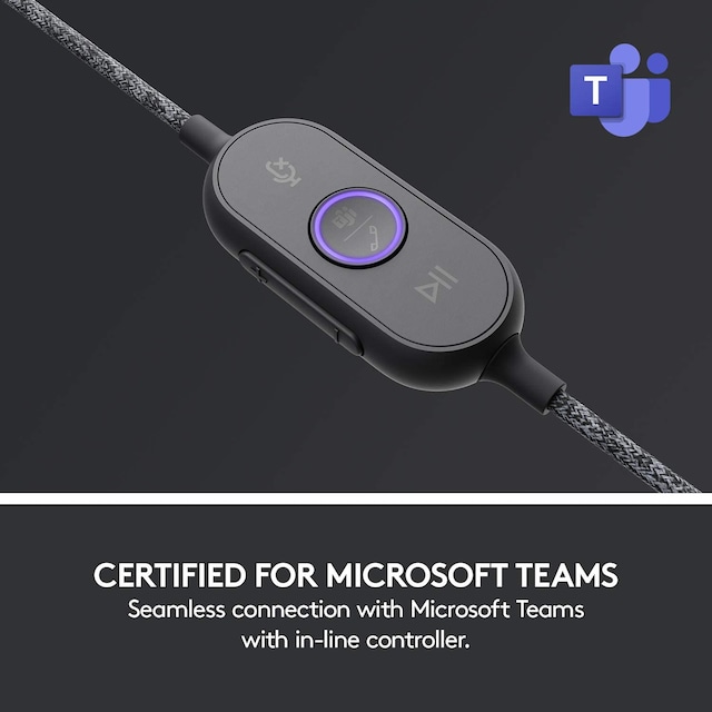 Hållbar, pålitlig och enkel att använda, Zone Wired gör det enkelt att chatta, starta eller gå med i ett Teams-möte med en enda tryckning på den dedikerade knappen på den inbyggda kontrollen. De intuitiva kontrollerna gör också att man kan stänga av ljudet, justera volymen, svara/avsluta/avvisa samtal och spela/pausa musik samt visuella Teams-meddelanden direkt på headsetet.