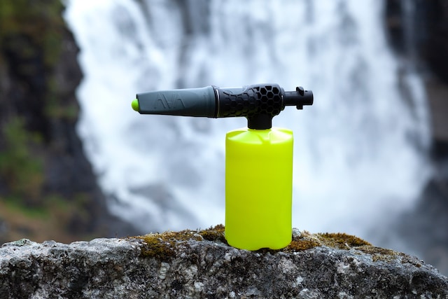 En skumkanon, som producerar ett vått, tätt skum som hänger på ytan.