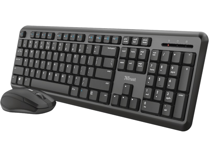 Trådlöst set med tangentbord och mus som ger ett optimerat arbetsflöde Tysta tangenter och musknappar för att förhindra att dina familjemedlemmar eller kollegor störs Tangentbordslayout i full storlek med tangenter som har en låg profil för att ge en mjukt och bekväm känsla när de trycks ner Snabb och enkel kontroll via 13 kontors- och mediatangenter Spilltålig tangentbordsutformning för att skydda mot vätskor En USB-mottagare för anslutning av både tangentbord och mus som kan förvaras inuti musen Mus med gummibelagda sidor för att ge ett stadigt grepp Anpassa muspekarens hastighet med DPI-knappen