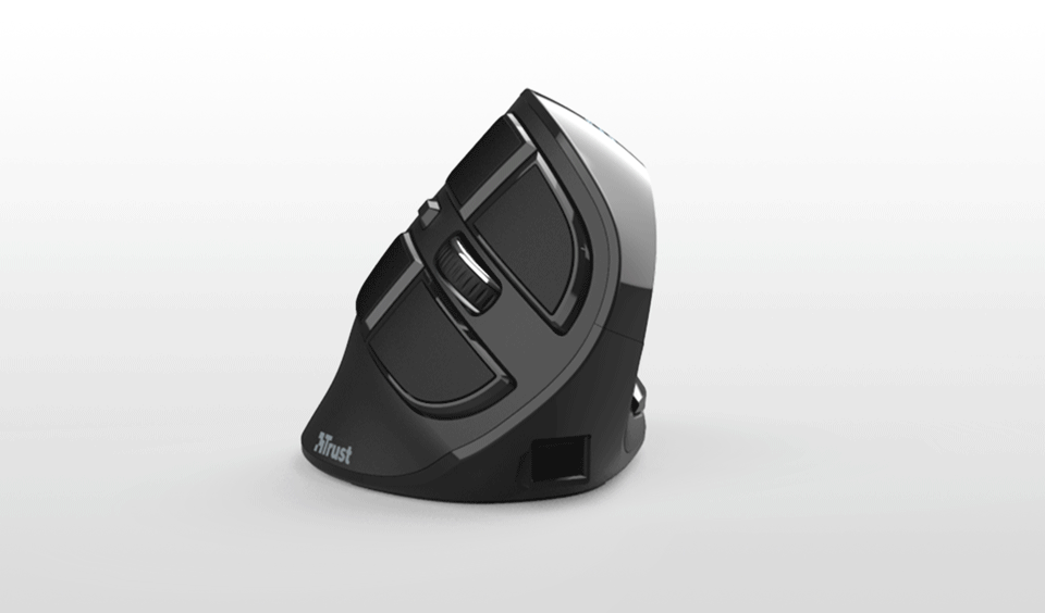 Skona handlederna under långa arbetsdagar. Med denna trådlösa, laddningsbara och ergonomiska Trust Vox-mus kan du arbeta så länge du vill. Den vertikala formen på denna ergonomiska mus minskar belastningen på handled och arm, medan de justerbara knapparna och LED-displaymenyn hjälper dig att förbättra ditt arbetsflöde.
