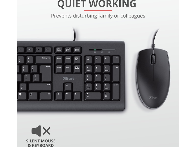 Tyst tangentbord och musuppsättning för bekvämt arbete