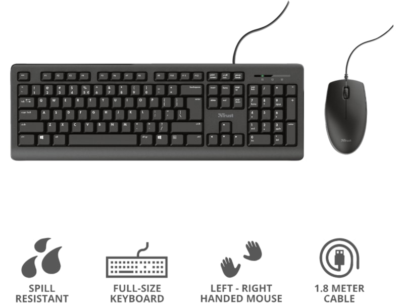 - Kabellängd på 1,8 m; placera tangentbordet var som helst på skrivbordet