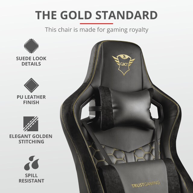 Nyckelfunktioner Rymlig, extra bekväm och mycket justerbar gamingstol Säte som kan roteras 360° Högkvalitativ klass 4 gasfjäder för höjdjustering Ergonomisk design med vaddering med hög densitet i sätet och ryggstödet Snyggt utseende med veganskt PU-läder, eleganta sömmar och detaljer i mockaimitation 4D-armstöd med maximal justerbarhet Ryggstöd som kan justeras 90–180˚ Lutbart säte som kan låsas i valfri vinkel Inklusive bekväma kuddar för ländryggen och nacken Stark och robust basram i metall med hjul på 65 mm Kräver inte mycket underhåll: spillresistent Stöder en vikt på upp till 150 kg