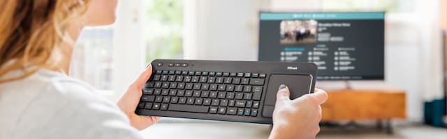 - Multimediatangentbord med integrerad XL-pekplatta för optimal kontroll av din Smart TV, laptop, dator eller spelkonsol