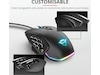 Egenskaper Scrollhjul, PixArt PMW3325 spelsensor, Flätad kabel, UPE-fötter, 14 programmerbara knappar, 16,8 miljoner mångfärgad belysning, RGB LED-bakgrundsbelysning, DPI-switch, Magnetiskt utbytbara sidoplattor