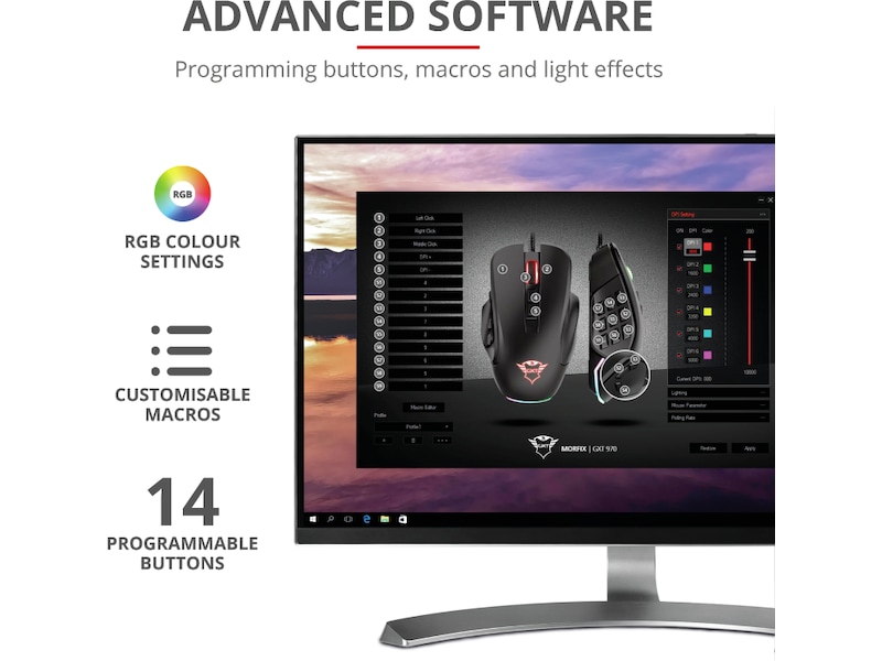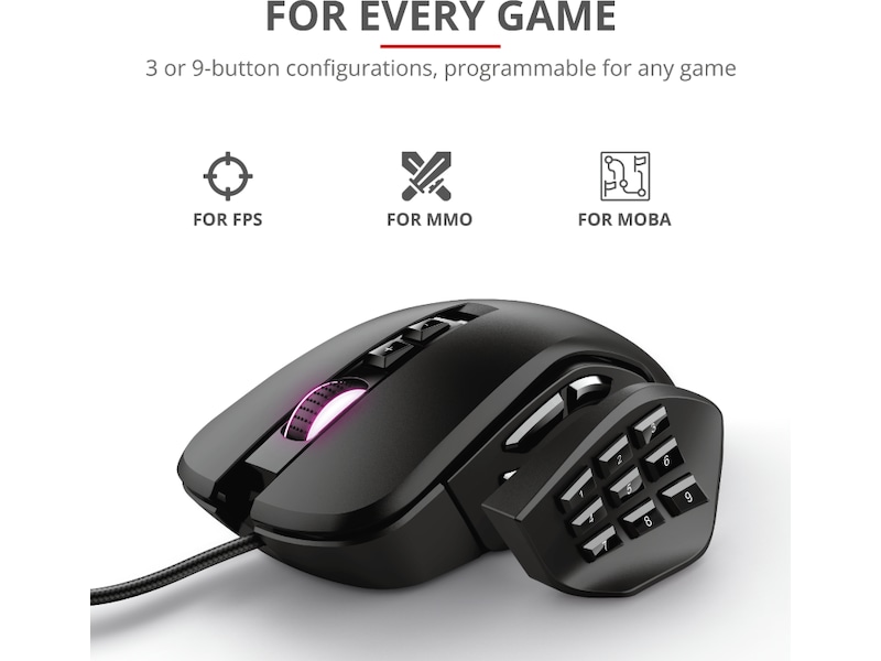 En spelmus kan ha stor påverkan även med den minsta rörelsen, så det är bäst att vara noga. Föreställ dig en mus så exakt att den är helt anpassad till din spelstil och gör exakt vad du vill. En anpassningsbar mus gör den drömmen till verklighet; den anpassningsbara spelmusen Trust GXT 970 Morfix kan skräddarsys efter dina unika spelpreferenser.