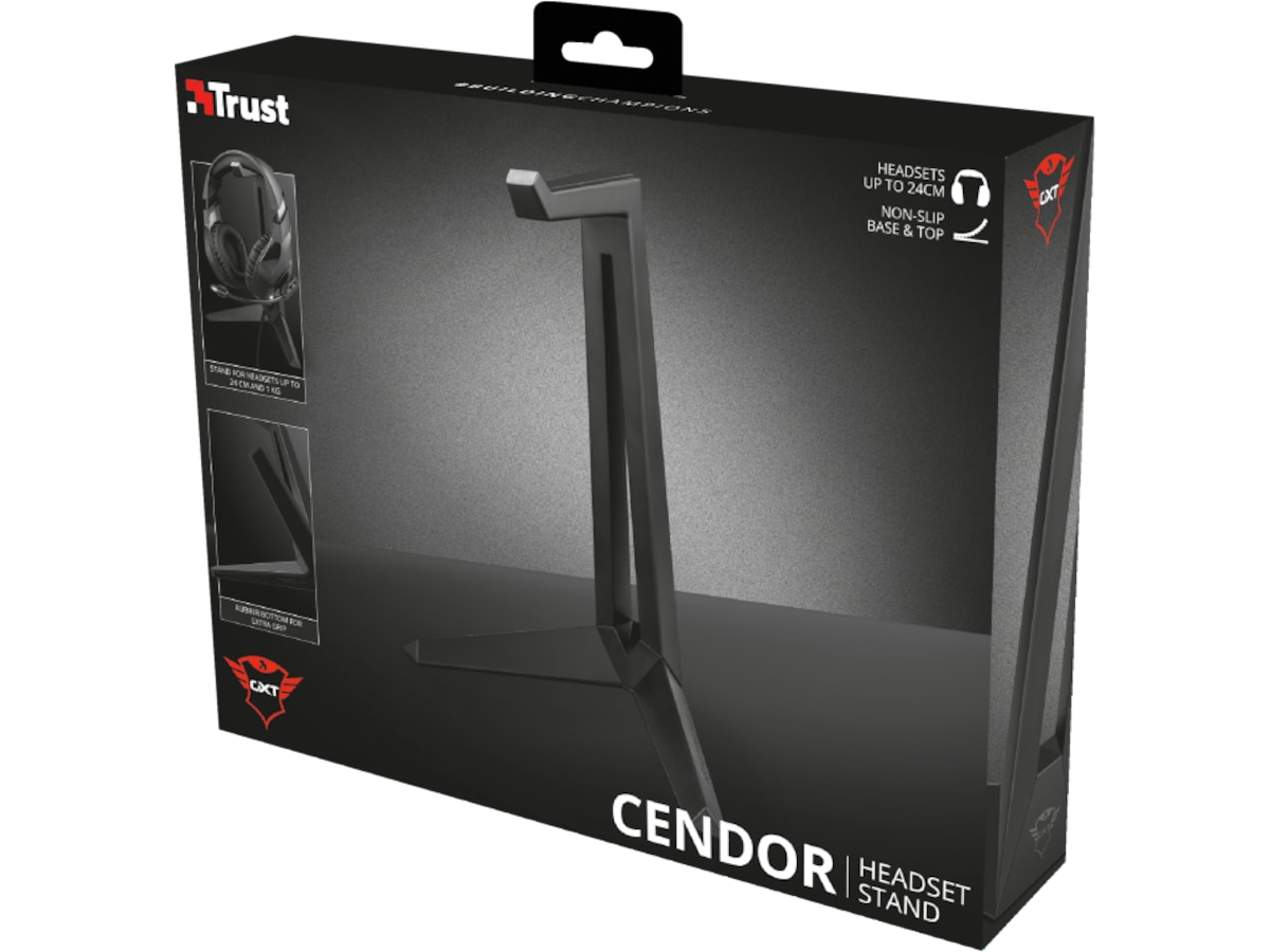 Ge ditt headset en egen plats på ditt skrivbord och håll arbetsytan ren och organiserad med headsetstativet GXT 260 Cendor. Detta universella stativ ger en säker förvaring för alla spelheadset med en höjd upp till 24 cm.