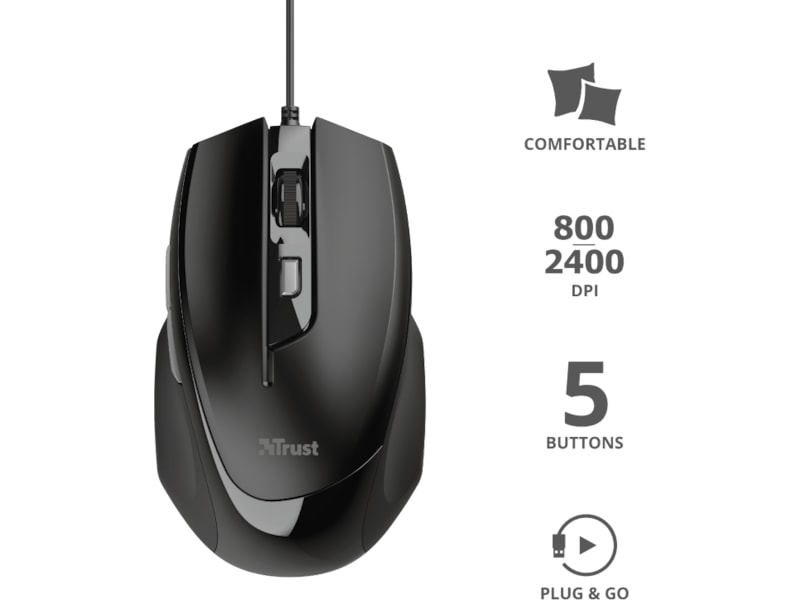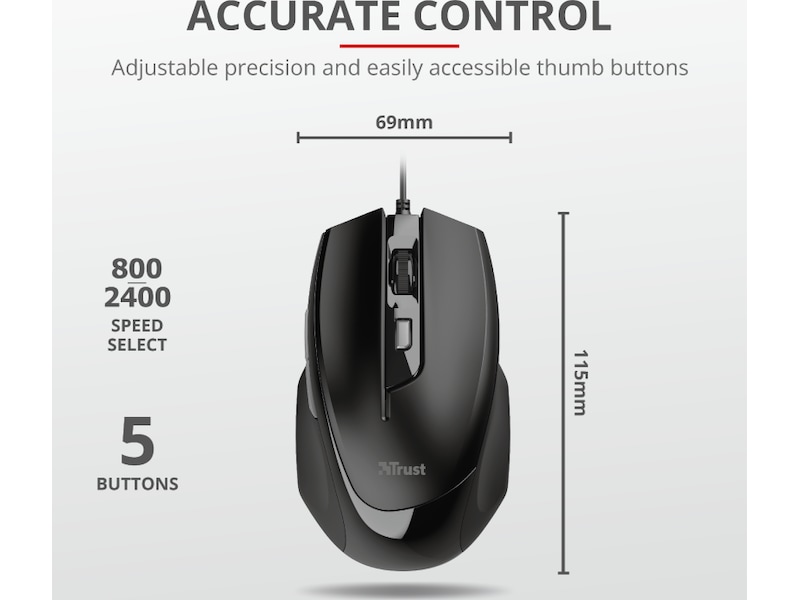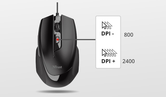 Musen har fyra DPI-inställningar, från 800 till 2400. Med ett snabbt tryck på knappen justeras rörelsehastigheten så att den matchar dina personliga preferenser. Från snabbt till exakt: musen kommer att kunna hantera det.