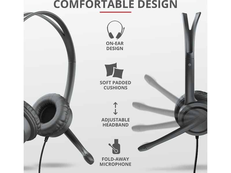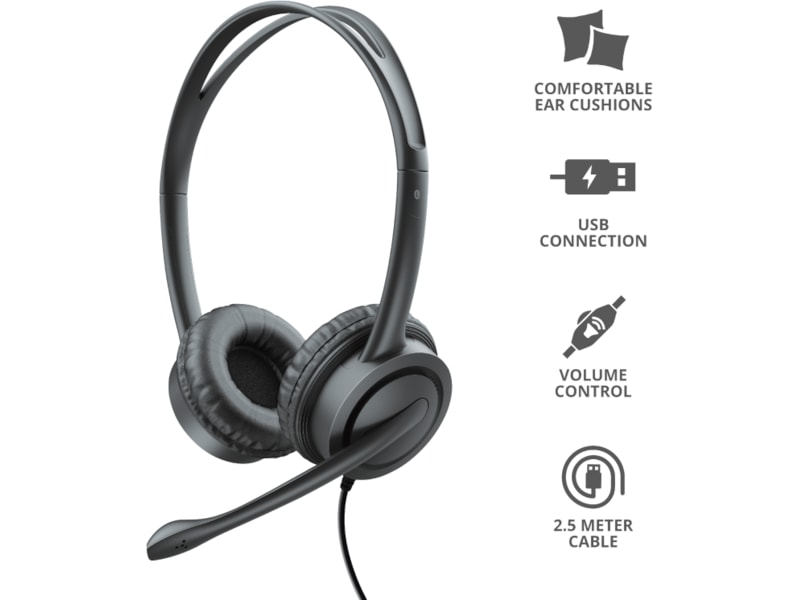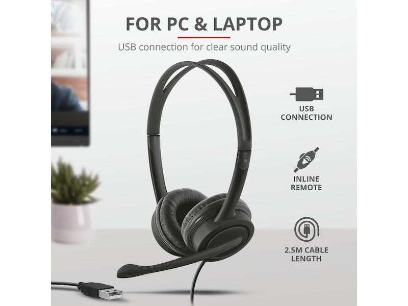 Nyckelfunktioner USB-anslutning för att få tydligt och bullerfritt tal under chatt eller onlinespel Bekväm design med en justerbar huvudbygel och mjuka öronkuddar Inbyggd kontroll med volymkontroll och mute-knapp för mikrofon och hörlurar Anslut bara en kontakt till USB-porten på din dator; du behöver inte koppla ur högtalarna Mikrofonen kan vridas bort när du lyssnar på musik Perfekt för onlinespel, att lyssna på musik, chatta och telefoniprogram som Hangouts, Teams, Zoom osv. Extra lång sladd på 2,5 meter